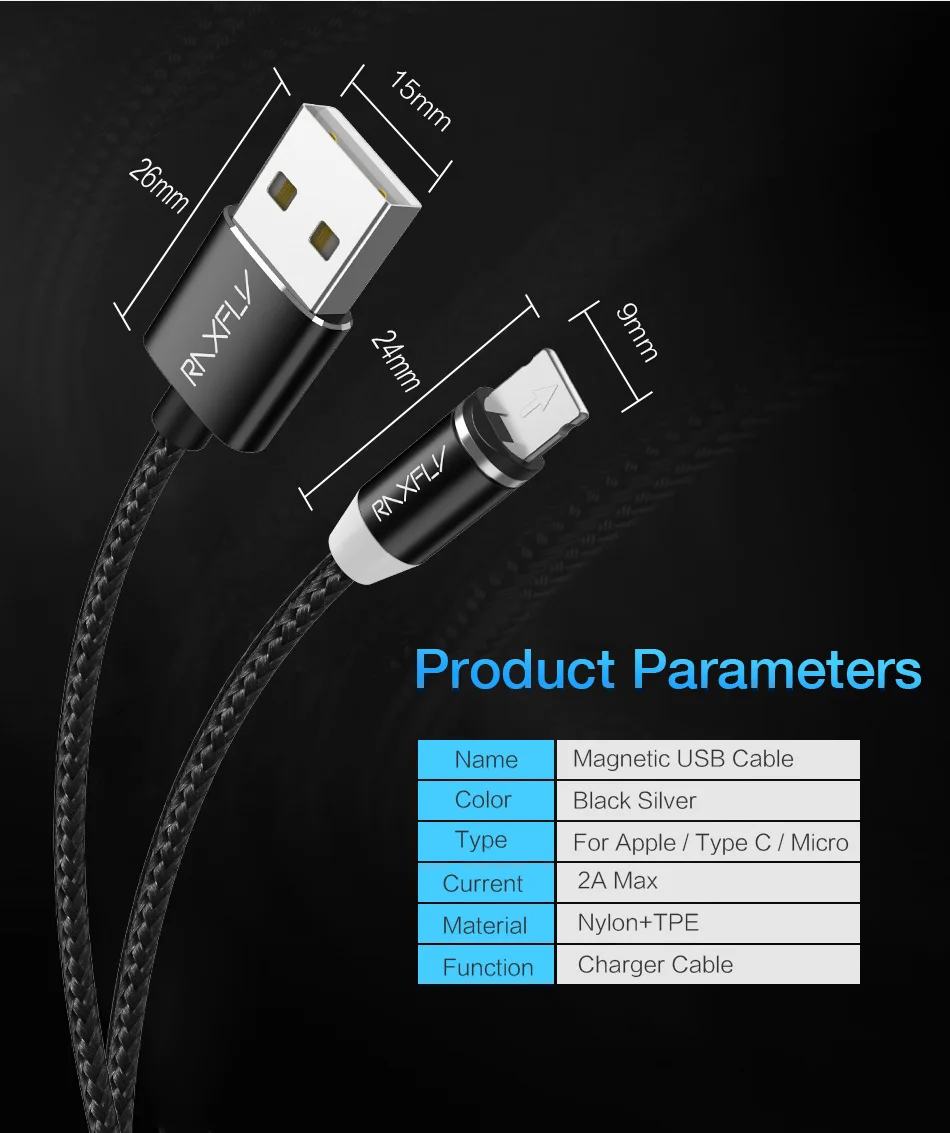 Магнитный кабель RAXFLY, Micro USB, Type C, для iPhone 11, 7, 8, Redmi Note 7, 8 Pro, в оплетке, провод для быстрой зарядки
