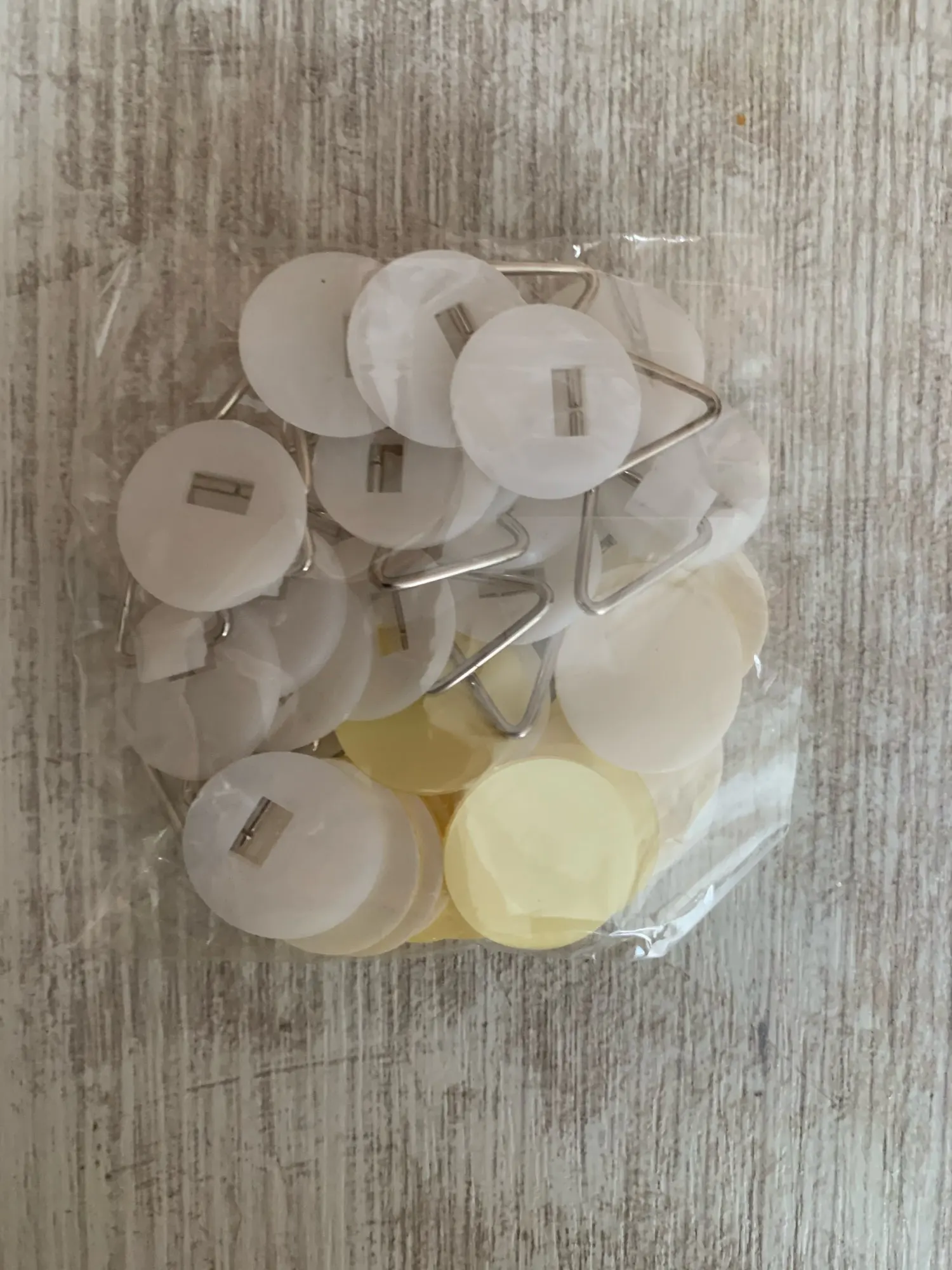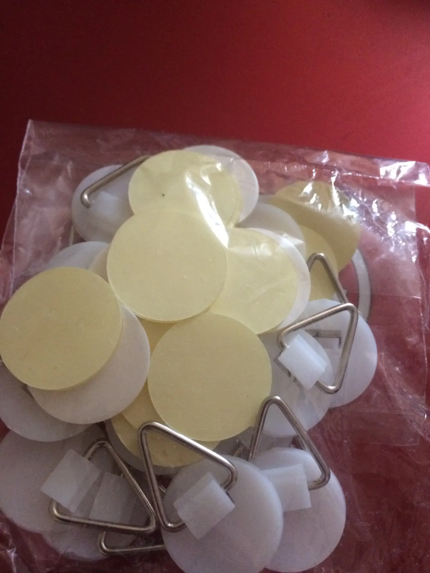 Пришел быстро, они выглядят хорошо. Они хорошо прилипают к задней части пластины, но я еще не повесил пластину на стену, чтобы увидеть, будет ли она держать. Кажется, трудно вытянуть крючок с задней части декоративной пластины, так что здесь надеюсь, что он будет держать. Крючки и клейкие круги отделены друг от друга-вы положите клей обратно на себя, что немного раздражает, а не уже на крючок и поместите его непосредственно на пластину.