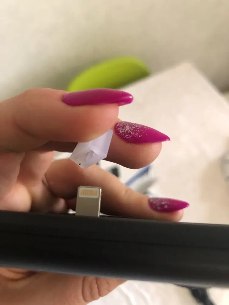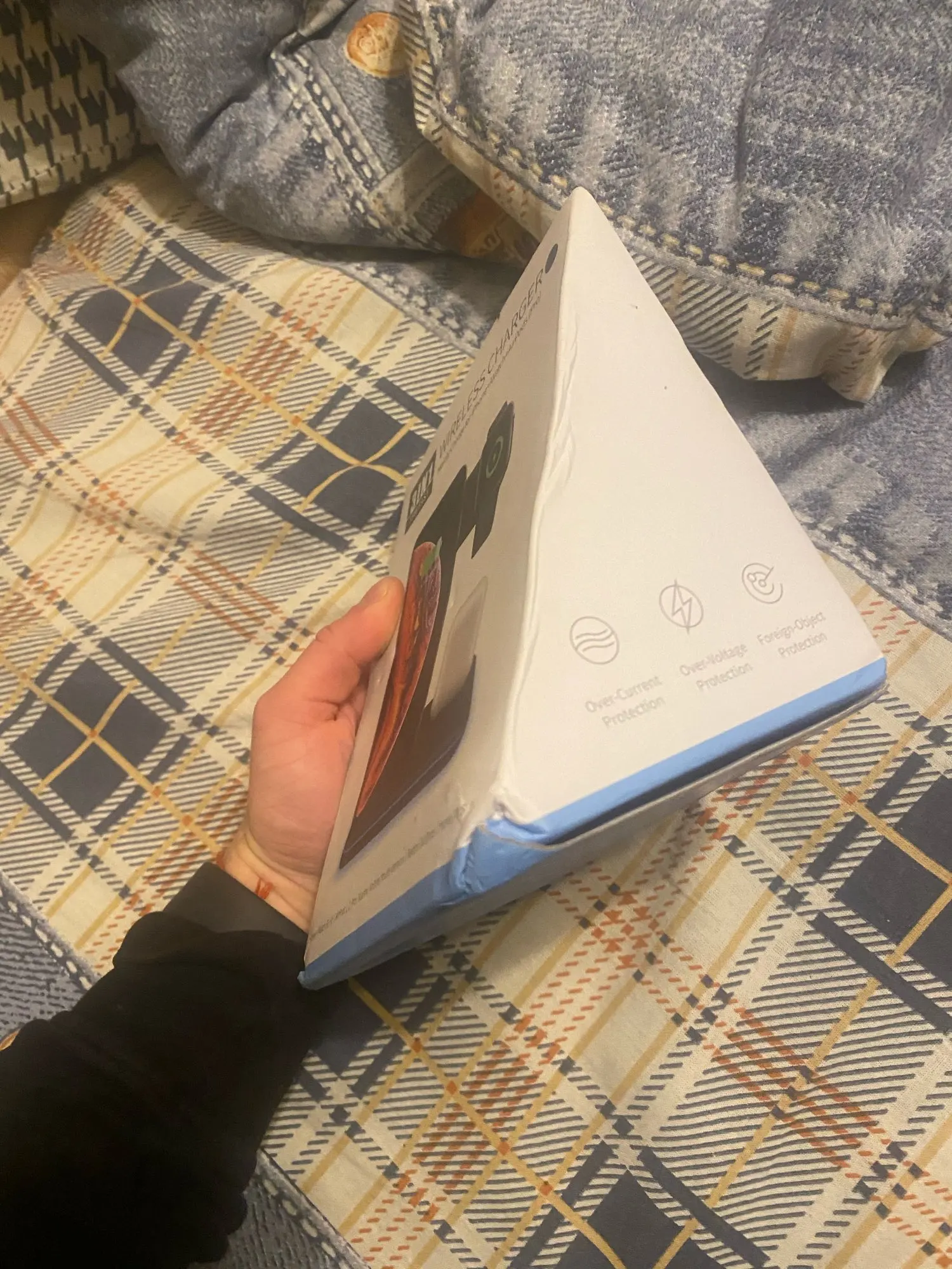 Коробка пришла чуть мятая, но никак не повлияло на саму зарядку. Все работает, подцветка тоже) заряжает айфон через чехол спокойно)