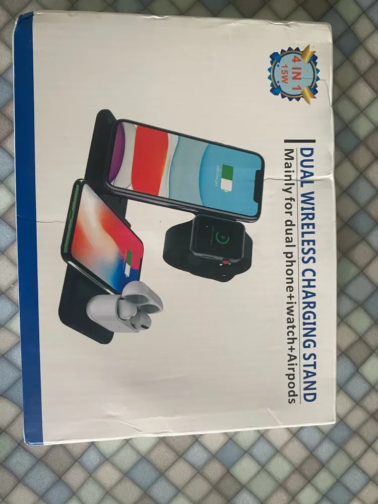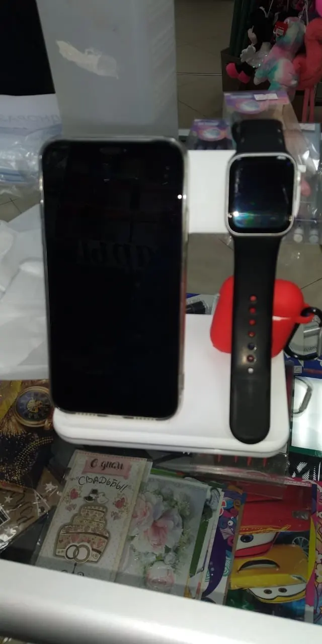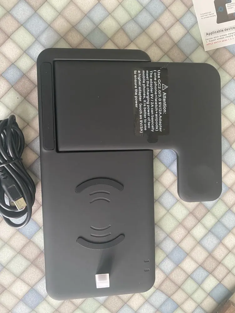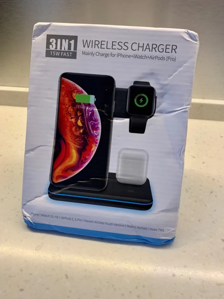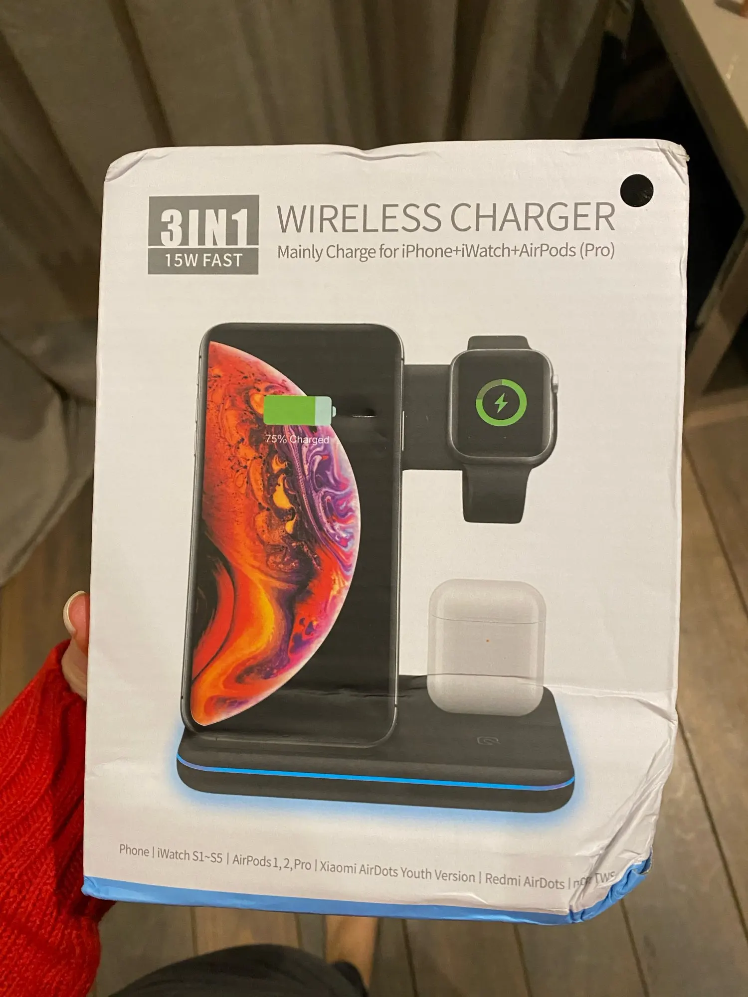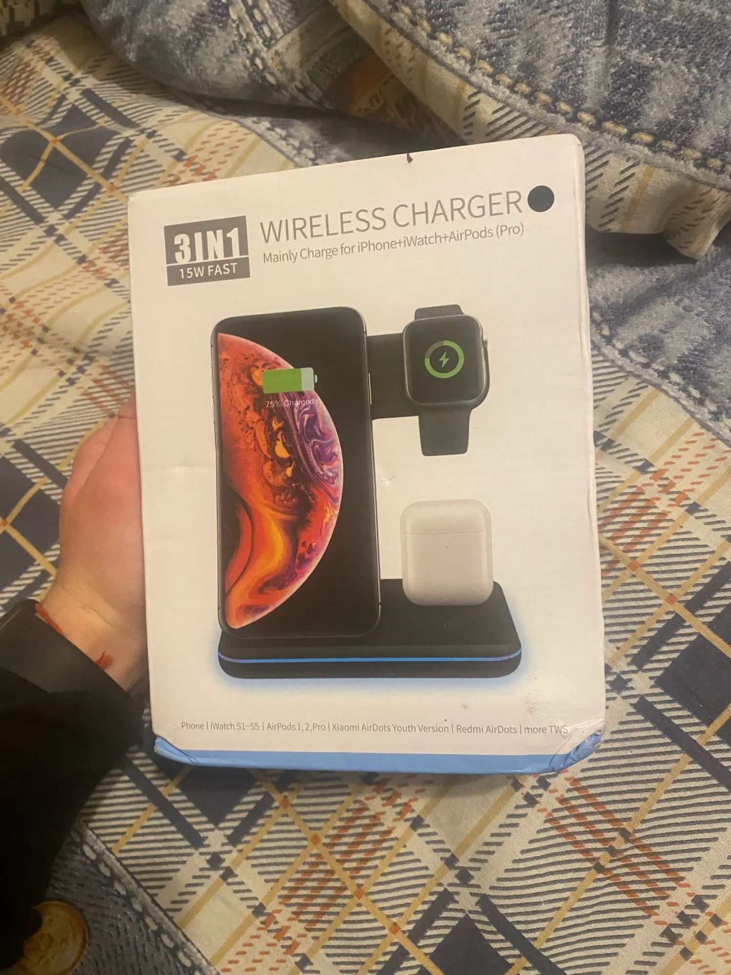 Зарядное устройство 3 в 1 не совсем правильное,так как работает только телефон, но заряд очень долгий и начинает греться,часы и наушники не реагируют на заряд совсем, так что делайте выводы сами при покупки этого товара, на фото есть доказательства того что заряжает только телефон.