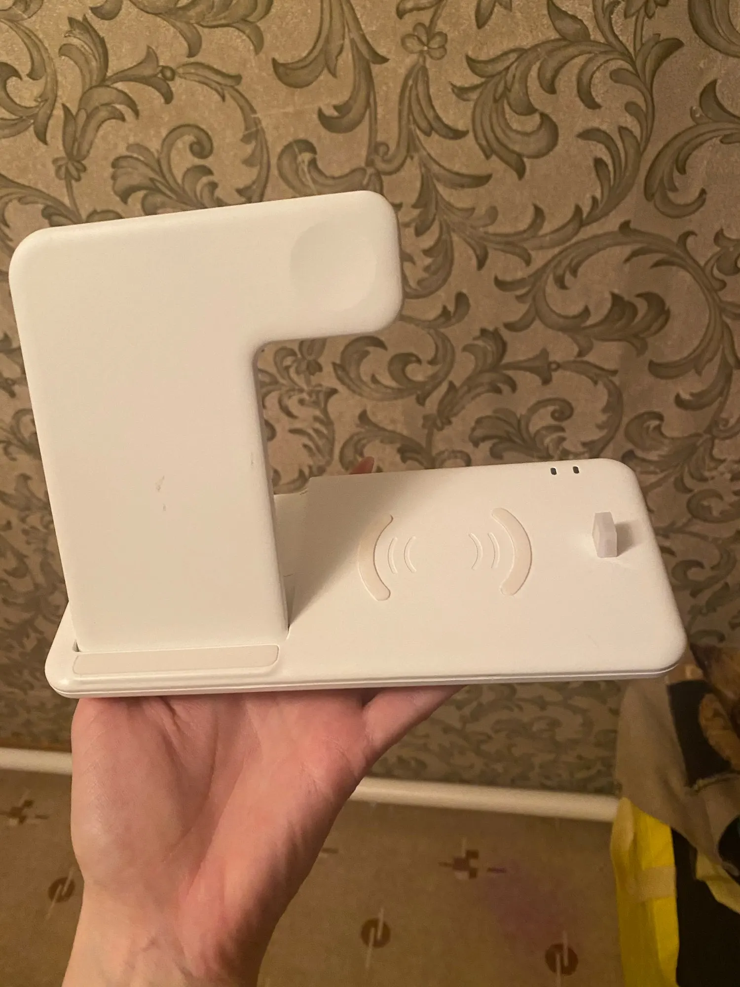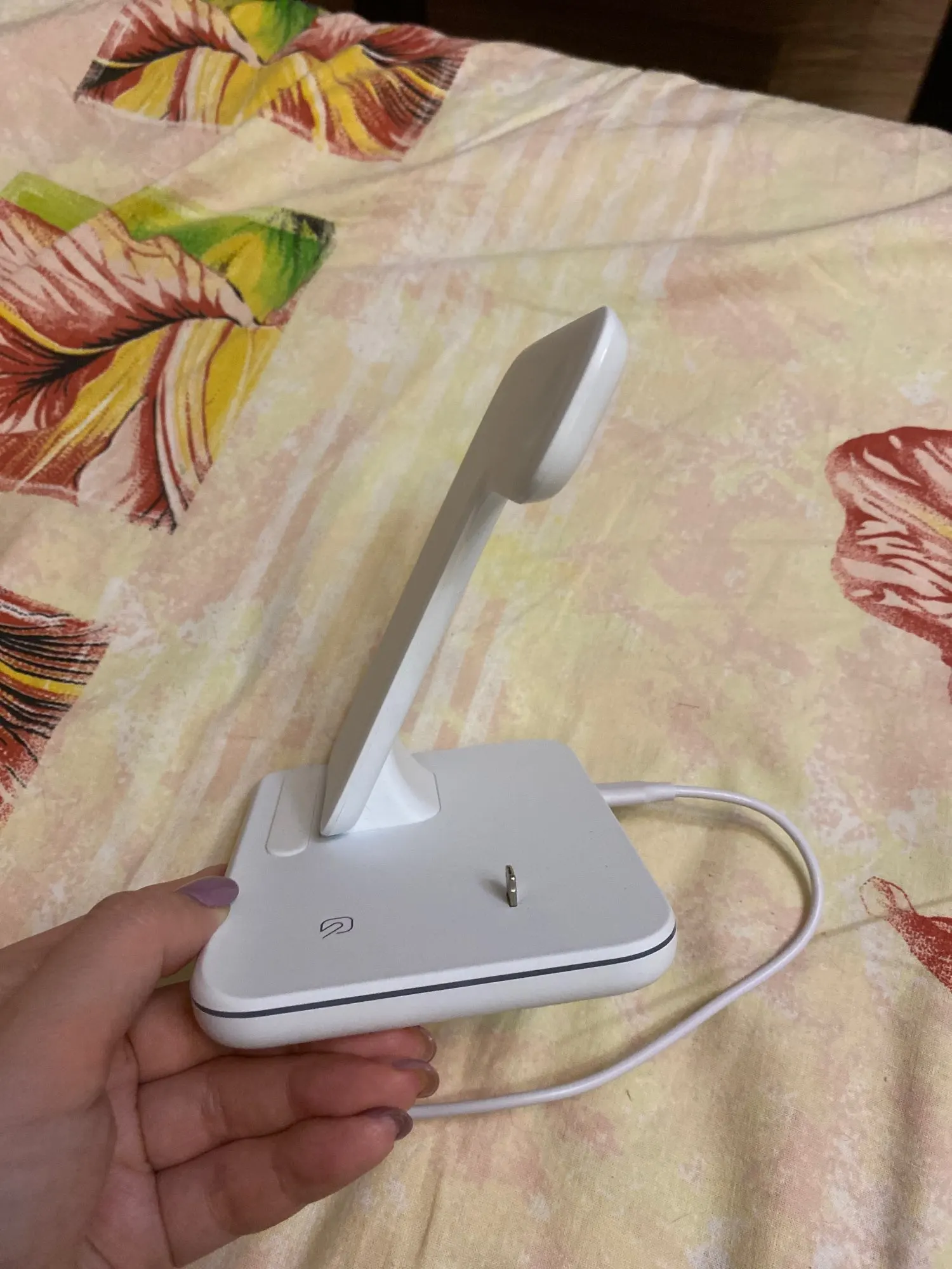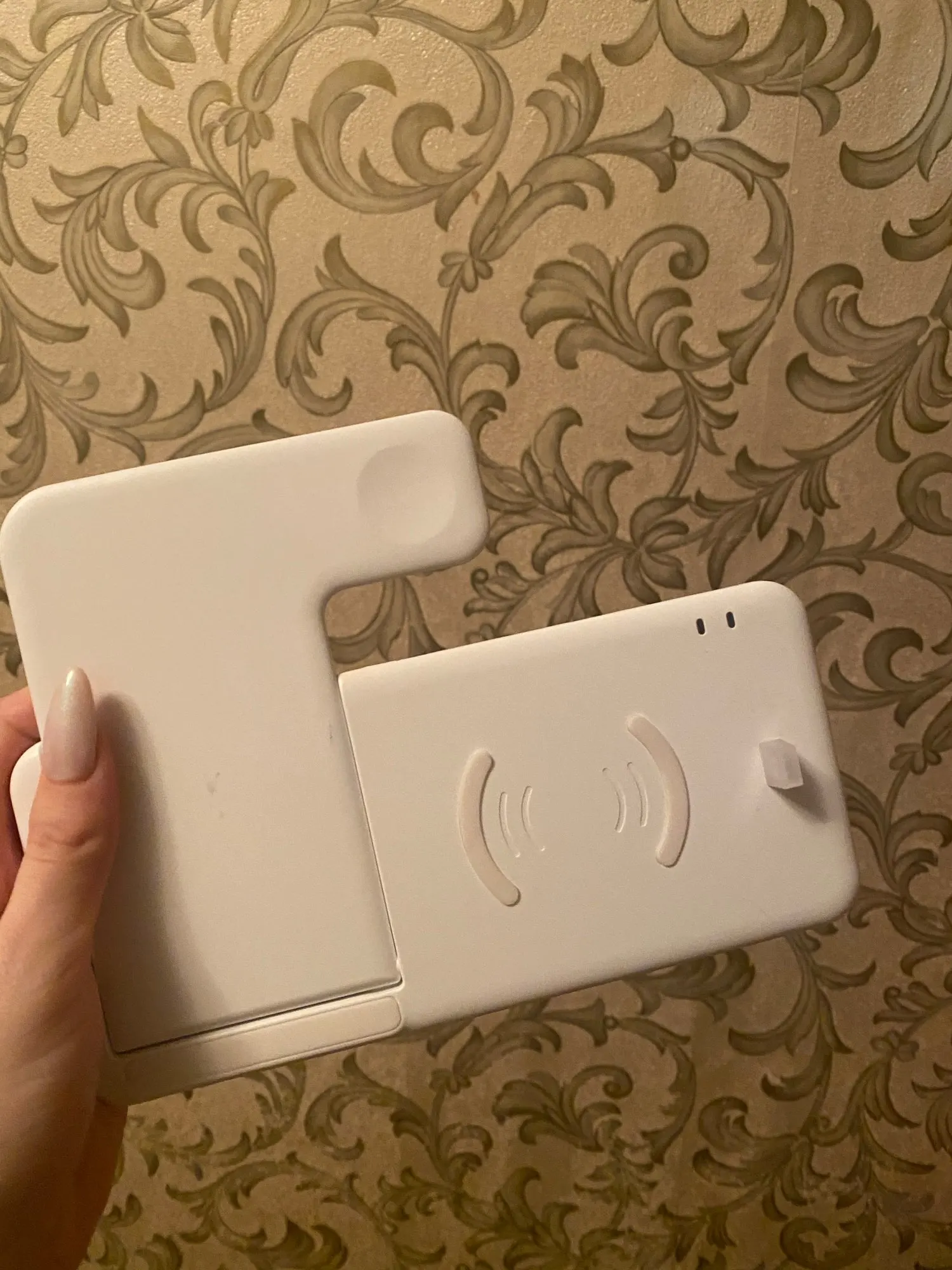 Быстрая доставка, ооооочень довольны заказом!!! Один шнур питания и 3 устройства заряжаются. Выглядит стильно и красиво, понравилась подсветка. Подстанцией можно включить или выключить, синий цвет сообщает о зарядке, зелёный о готовности устройств