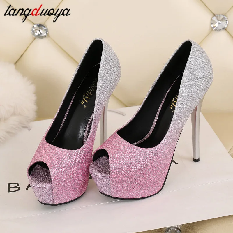 Туфли-лодочки женские на очень высоком каблуке 1214 см, платформа, градиентные, свадебная обувь, туфли с открытым носком для невесты