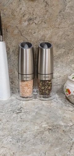 классные мельницы, выглядят дорого, пришли в коробке, хорошо упакованны, не стыдно такие в подарок.. 6 батареек на каждую мельницу, в комплекте не идут. Доставка супер, за 2недели..тяжеленькие и крупные.. не надо кнопки нажимать, наклонил и она мелет, в общем мне понравились