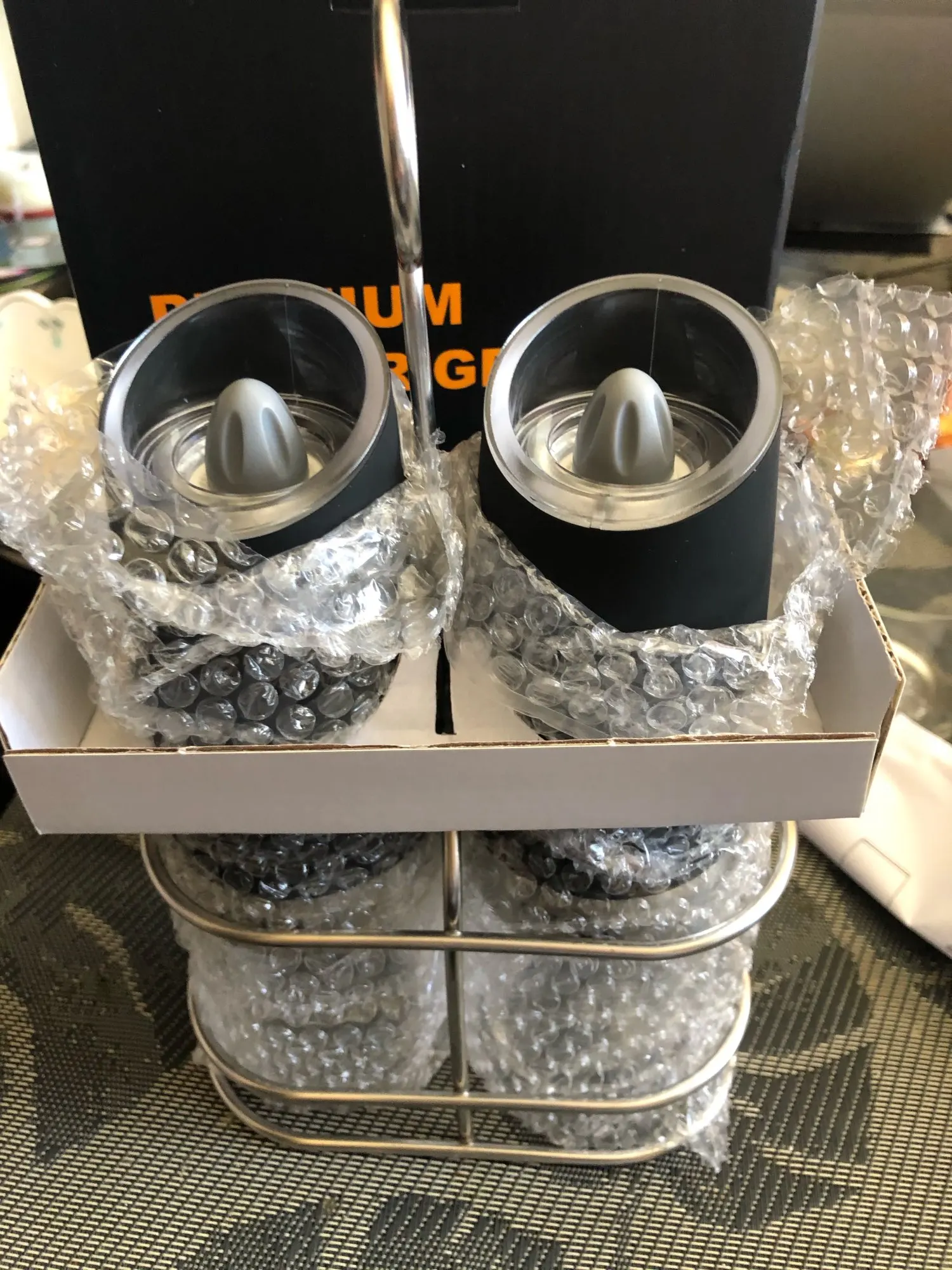очень быстрая доставка. все работает. перец мелет на Ура, ждём доставку гималайской соли. единственное - не хватает крышек сверху, чтобы пыль не собиралась, пока мельницы не используются