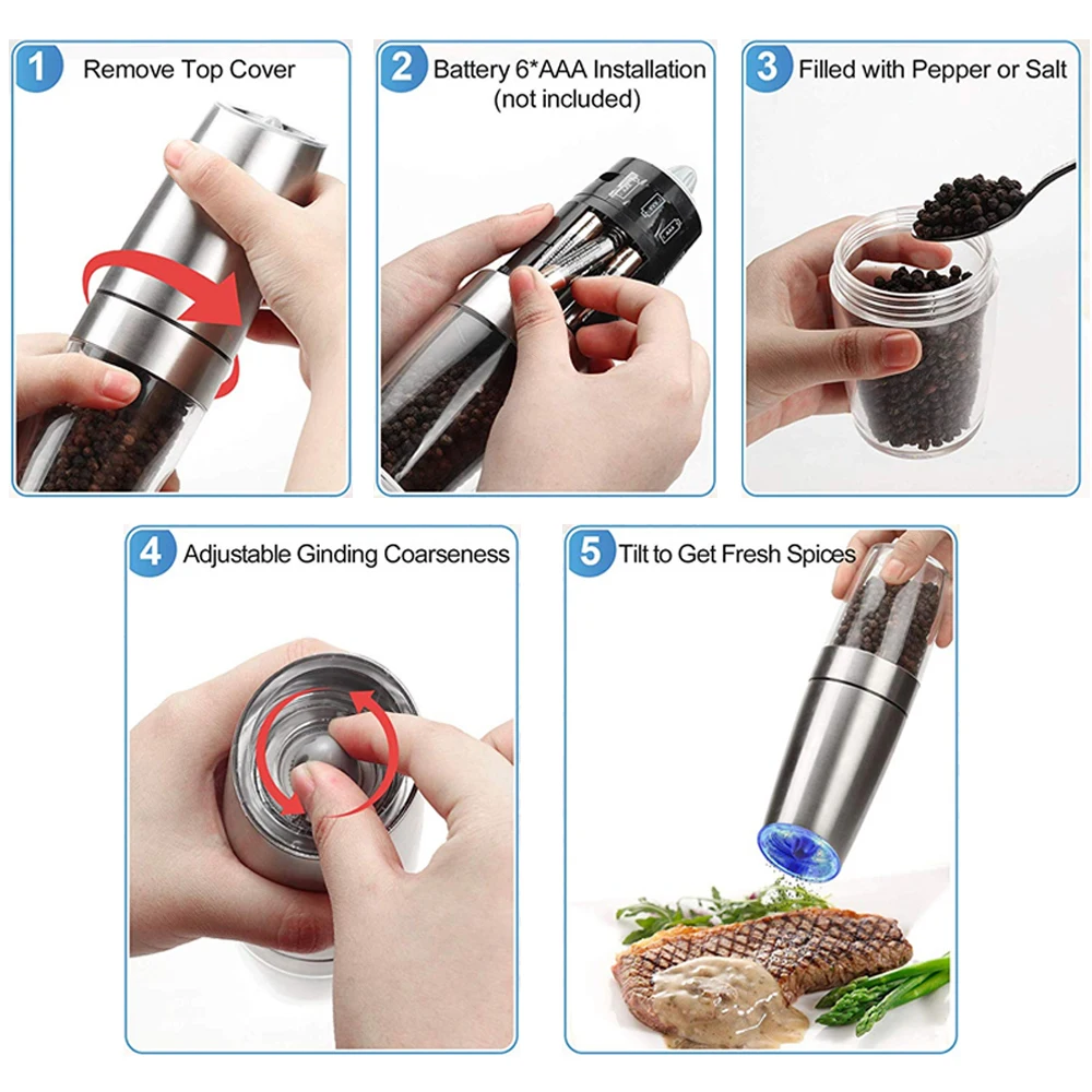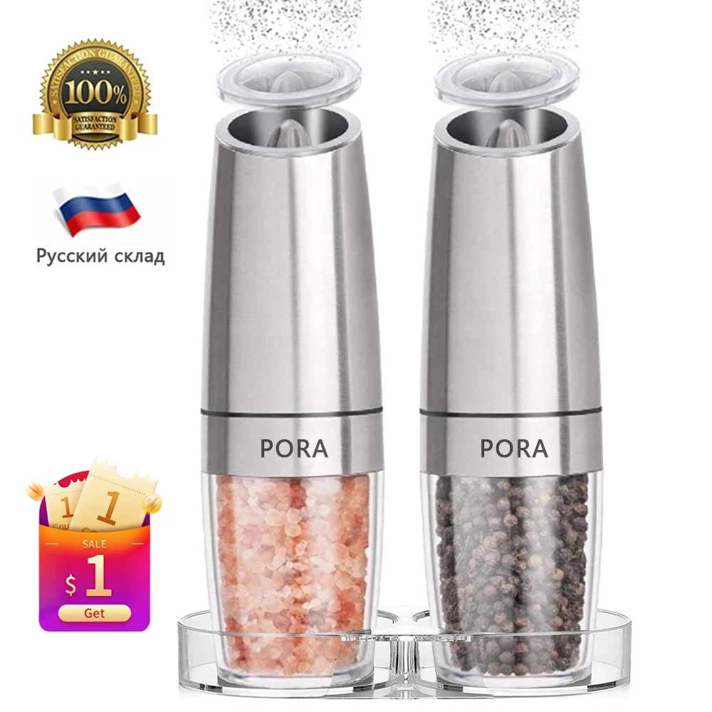 2 шт. набор электрическая мельница для перца нержавеющая сталь Автоматическая гравитационная Индукционная мельница для соли и перца кухонная мельница для специй инструменты,перечница солонка