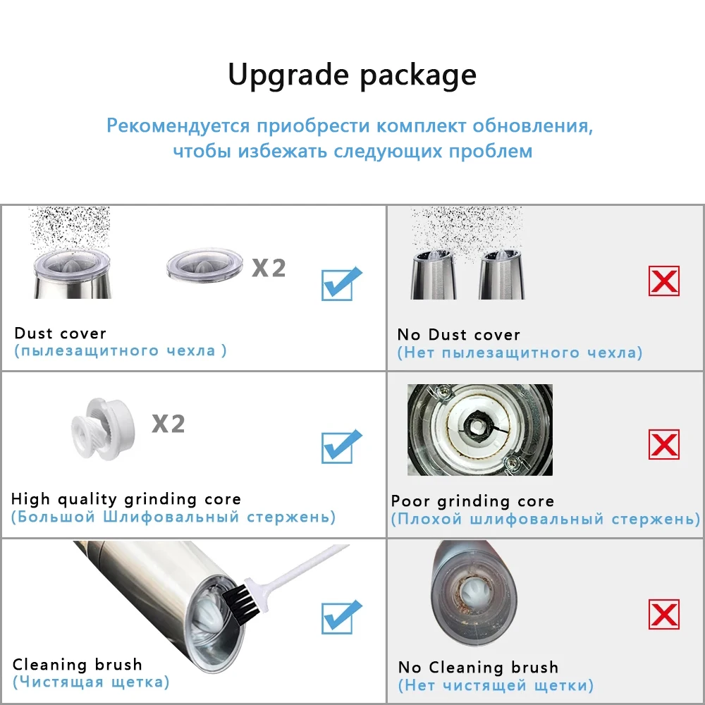 Заказывал два набора по факту получил один набор . При распаковке посылки всё снимал на видео , связался с продавцом по поводу получения одного набора ( в переписке заявил о видео распаковки посылки ) продаван попросил выслать видео , после подтверждения получения одного набора , продаван отправил второй набор . Получил , здорово , но при проверке , оказалось одна мельница рабочая , вторая не рабочая + не было щетки для очистки как в первом наборе . НУЖНО ПРОВЕРЯТЬ ПРИ ОТПРАВКЕ ТОВАР ! И людям проблем и для магазина геморроя меньше . Понятно , что одни сидят в Китае , а другие в Нашей Раше и похоже наши китайцы уже подохуели . Решать Вам , стоит ли заказывать , но в целом магаз и продавца рекомендую !
