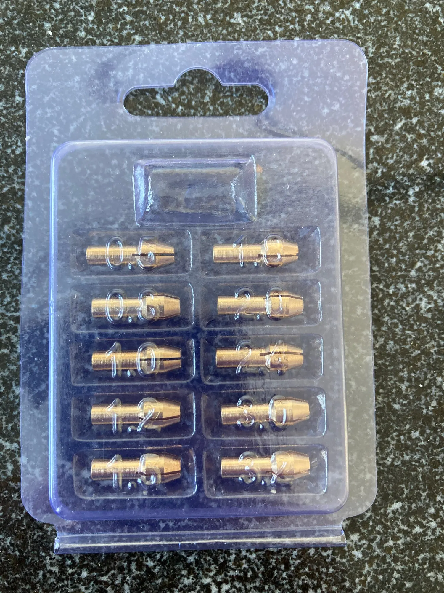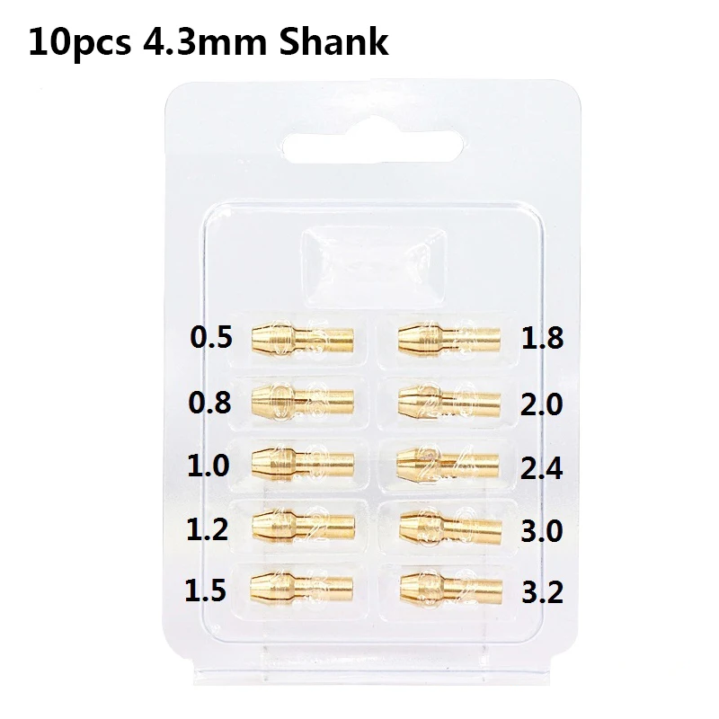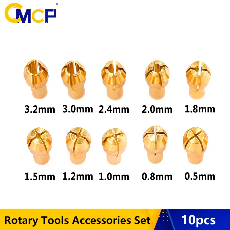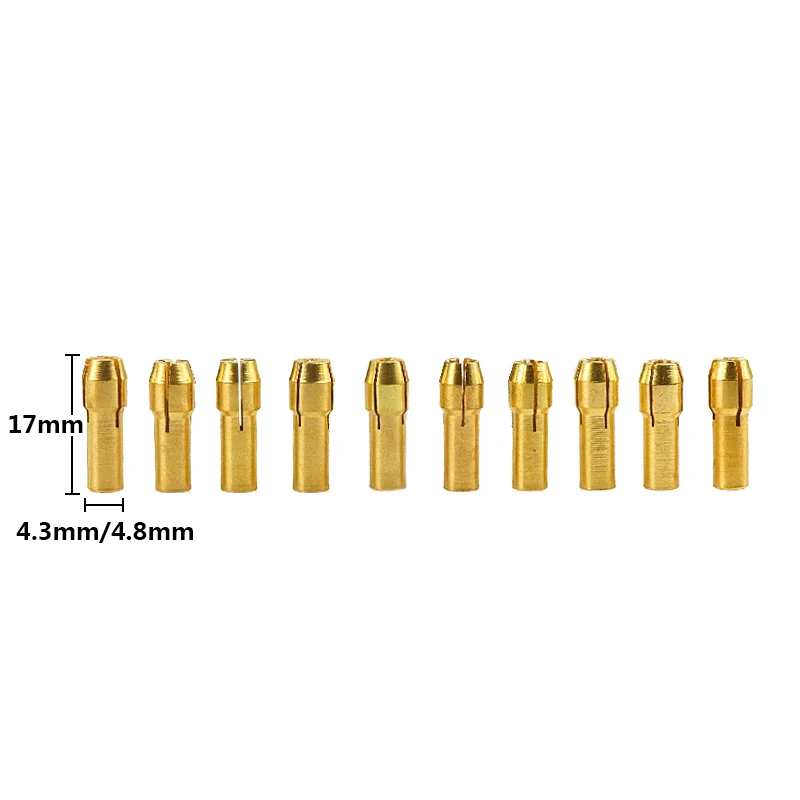 Патрон цанговый для дрели Dremel, латунный хвостовик 4,34,8 мм, для вращающихся инструментов, 0,50,81,01,21,51,822,433,2 мм, 10 шт.