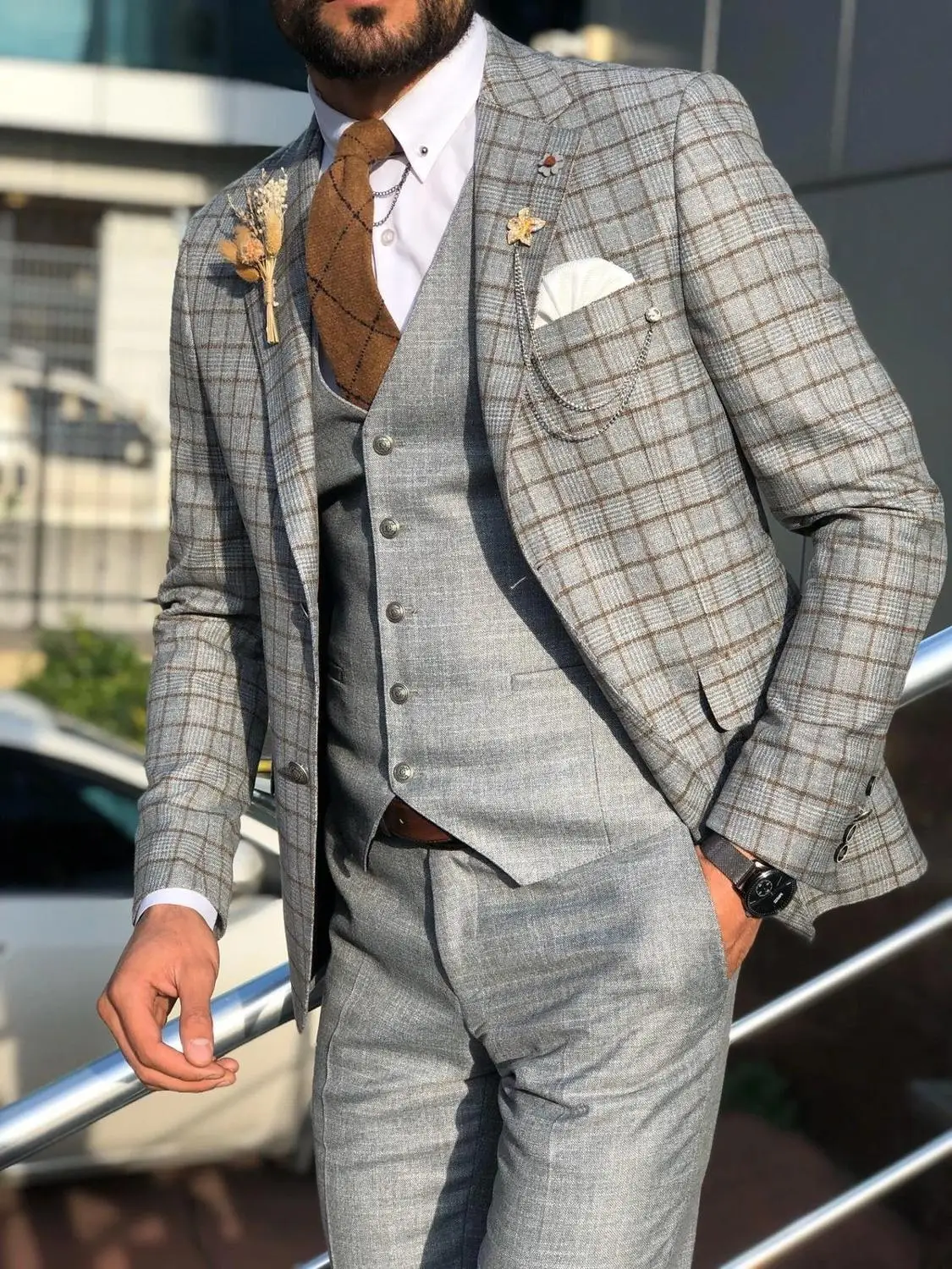 Свадебный Смокинг на заказ, винтажный строгий костюм лучшего мужчины, одежда для жениха, мужской твидовый костюм из 3 предметов (пиджак + брюки + жилет)