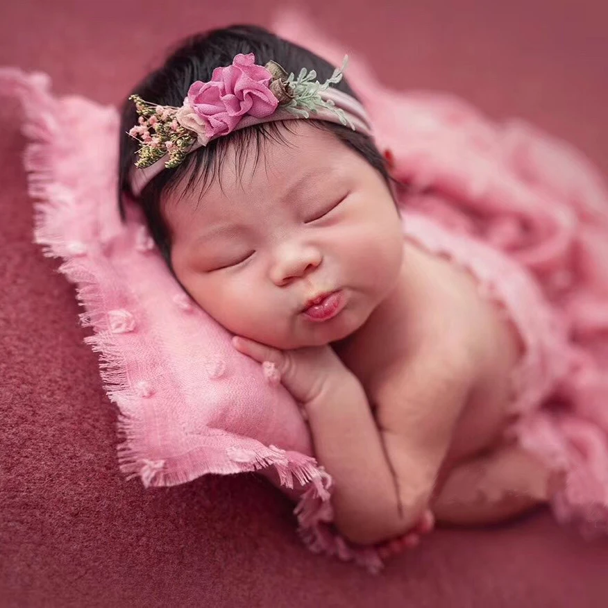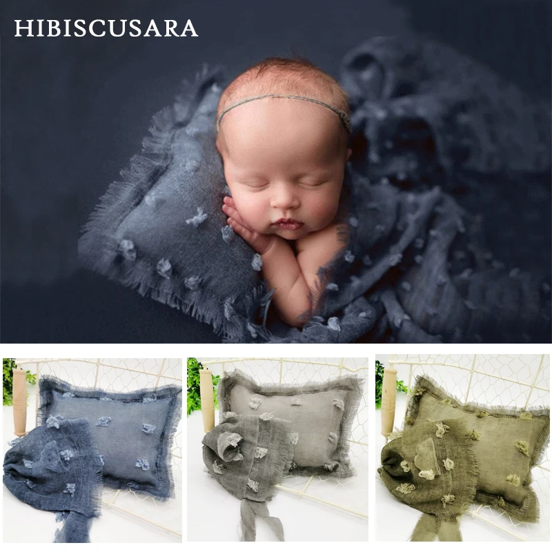 Детские подушки для фотосъемки + шапочка, комплект из 2 предметов, из хлопка и льна, реквизит для фотосъемки новорожденных, аксессуары, крашеная под галстук шапка медведя, позирующие бобы