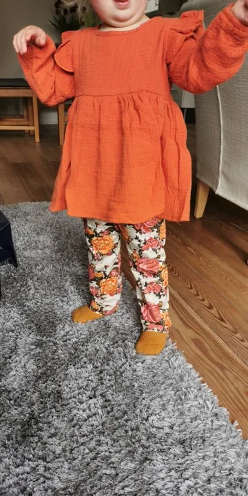 Детский топ с длинным рукавом и оборками и брюки с цветочным принтом