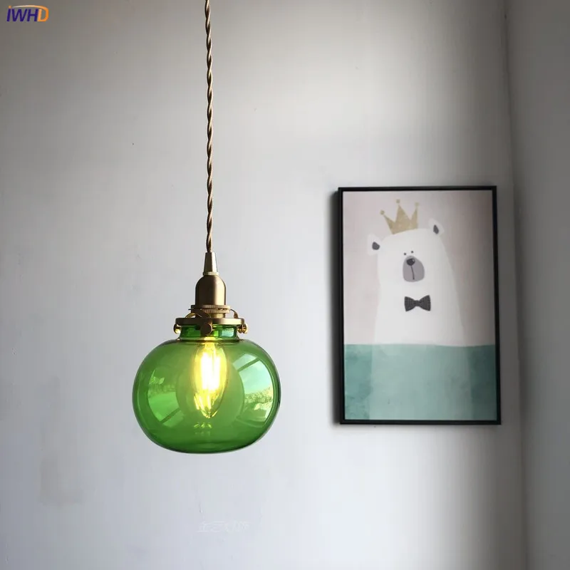 Современные стеклянные шаровые подвесные светильники IWHD в скандинавском стиле, Подвесная лампа в японском стиле для спальни, ванной, зеркала Эдисона