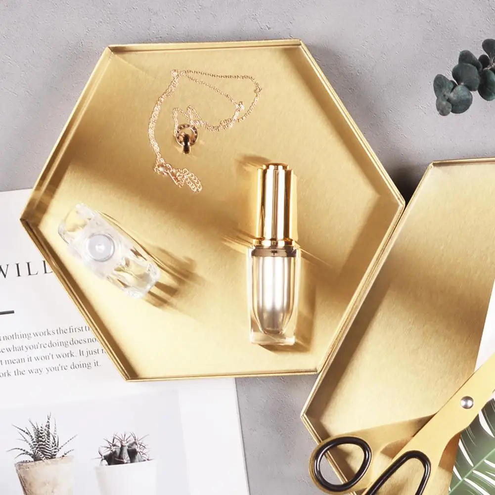 Золотистый геометрический поднос для хранения из нержавеющей стали,...