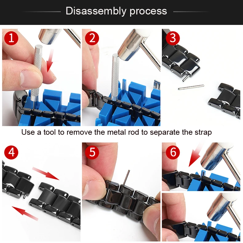-Длина регулируется: все керамические звенья съемные, очень легко снимаются звенья, чтобы изменить длину ремешка, чтобы идеально соответствовать вашему запястью. В комплект входит инструмент для удаления звеньев.