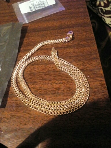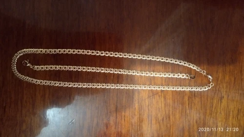 Я выбрала этот набор потому, что это плетение понравилось больше остальных и отзывы были нормальные. Он пришел просто в пакетиках и когда я достала цепочку, она была вся в перекрутах. Один из них раскручивали с мужем минут 20 и боялись сломать. И вообще это плетение перекручивается при каждом удобном случае! Цвет значительно отличается от настоящего золота (фото 3) и слишком блестит.Буду ждать,пока потемнеет :) .Поэтому продавцу 5 звёзд, а цепочку я бы выбрала другую.