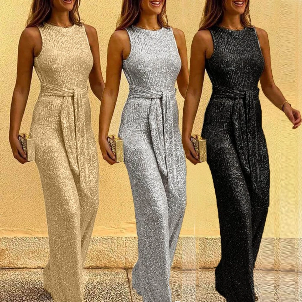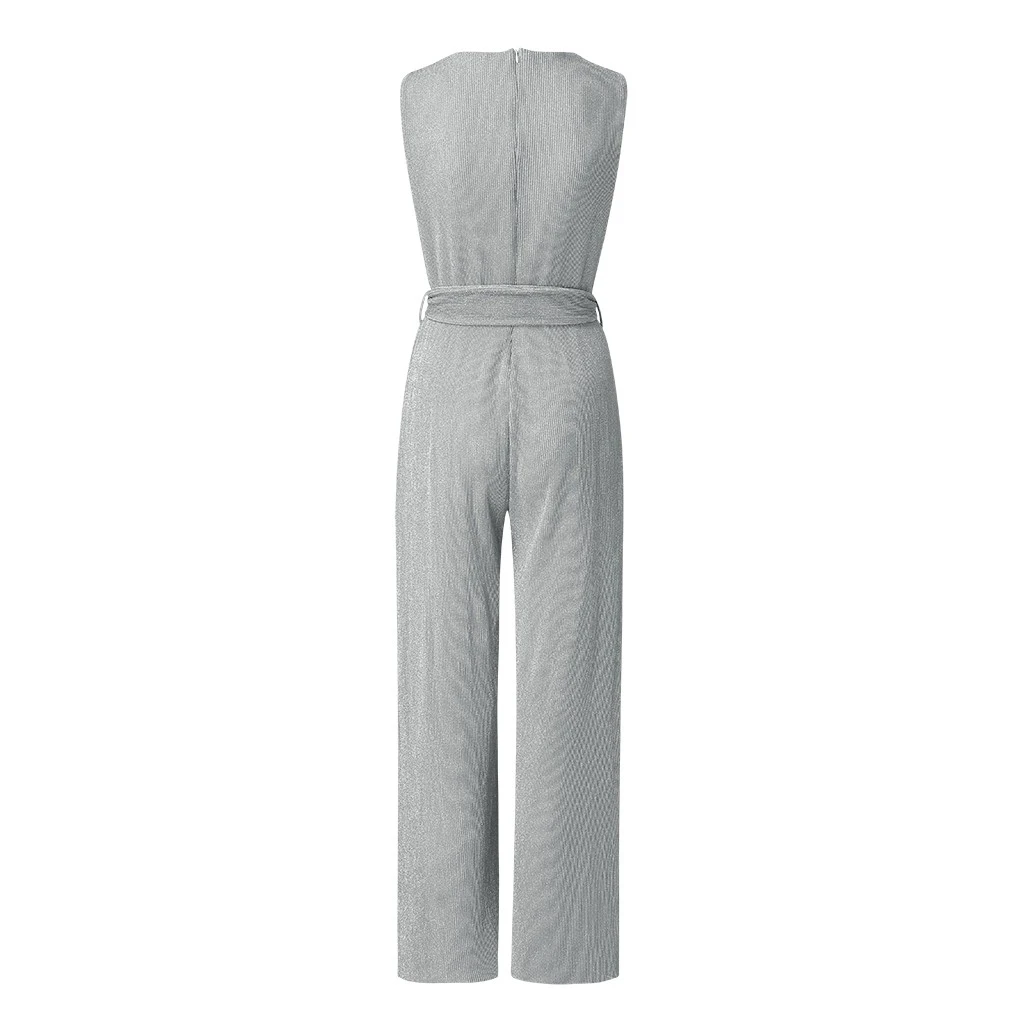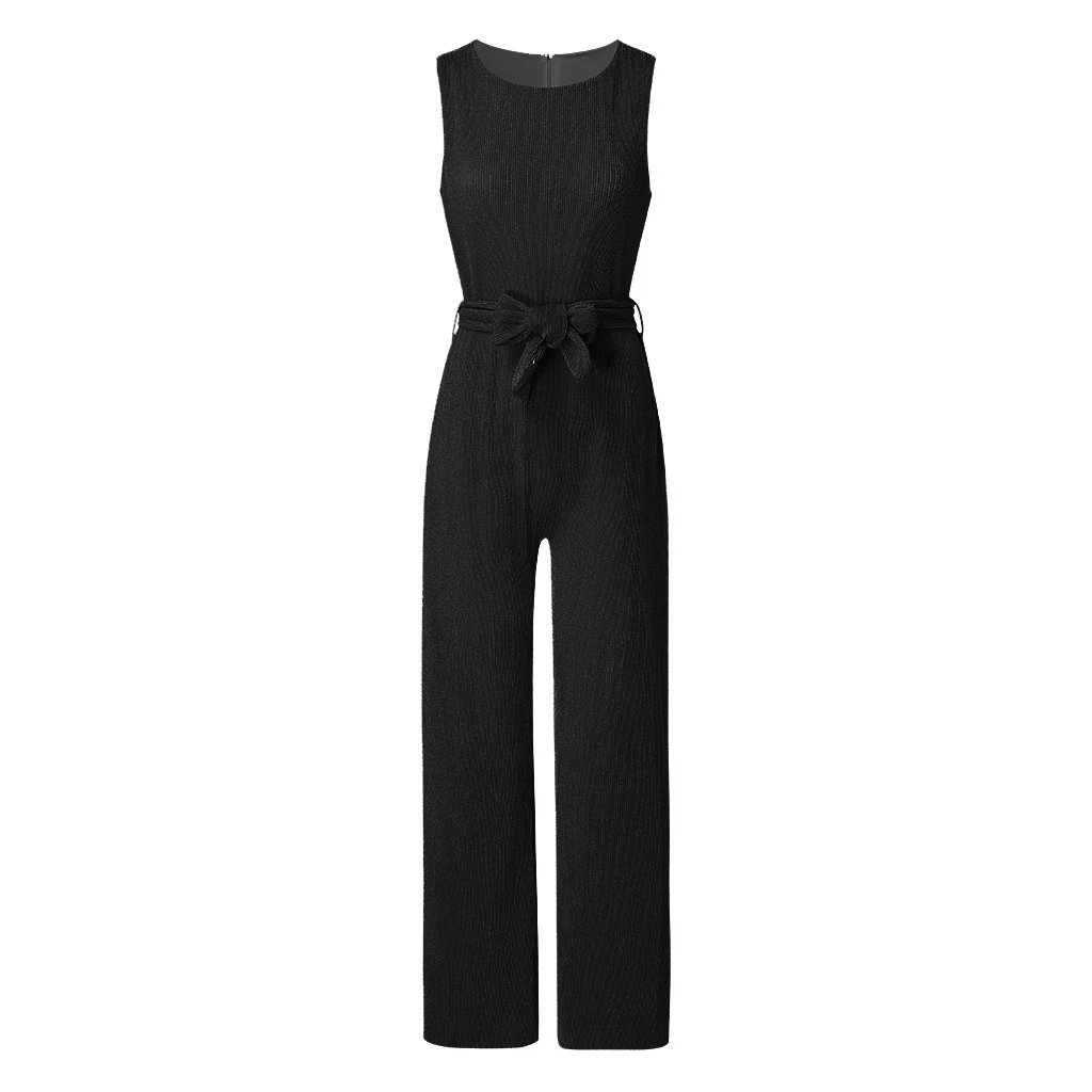 Модный женский летний однотонный повседневный комбинезон без рукавов с широкими штанинами