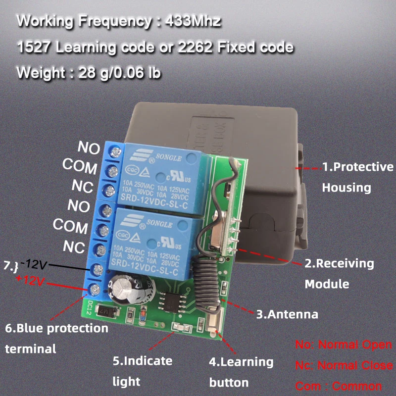 Универсальный пульт дистанционного управления, 433 МГц, 12 В, 10 А, 2 канала