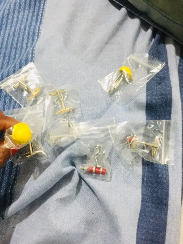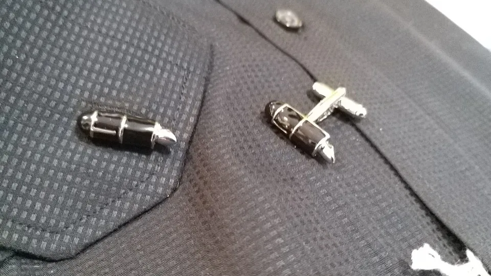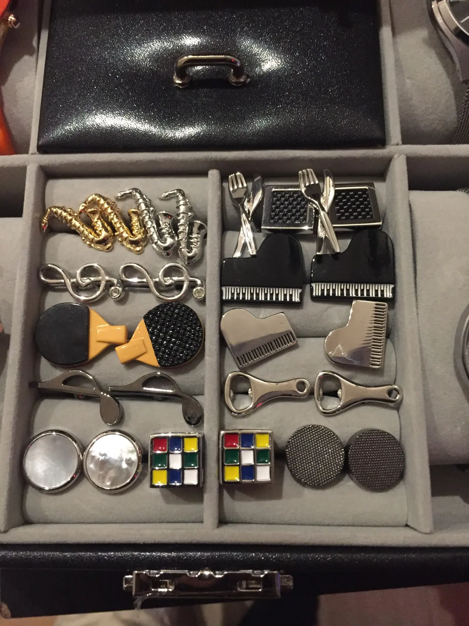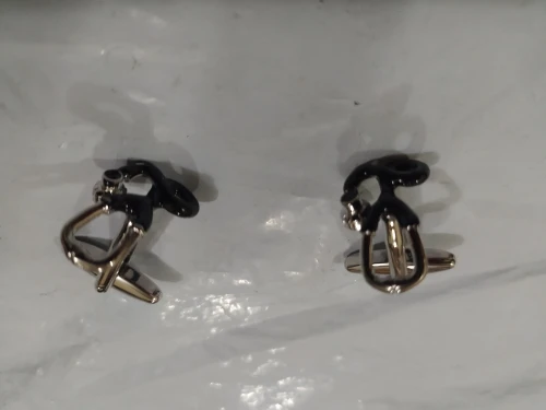 Запонки мужские, с огнетушителем, молотом судьи, будильником