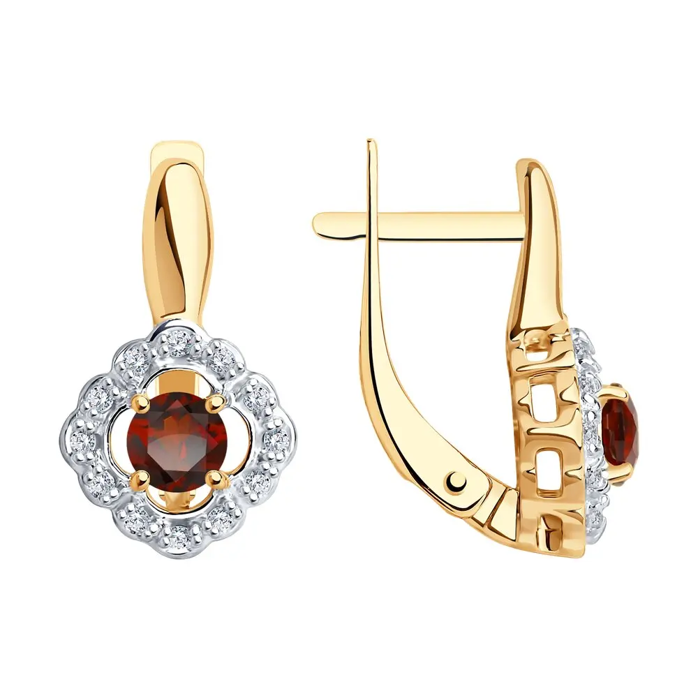 Серьги SOKOLOV из золочёного серебра с гранатами и фианитами, Серебро, 925, Женские, Серьги 2022 тренд, Оригинальная продукция