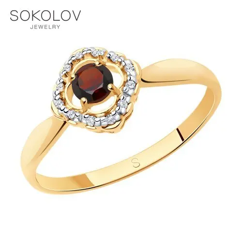Кольцо SOKOLOV из золочёного серебра с гранатом и фианитами, Серебро, 925, Женское, Оригинальная продукция