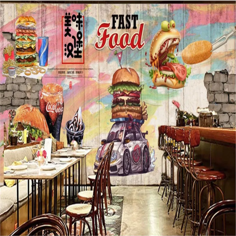 Европейский и американский гамбургеры граффити фон 3D Роспись настенная бумага Ретро фаст-фуд Ресторан закуска Бар Декор настенная бумага 3D
