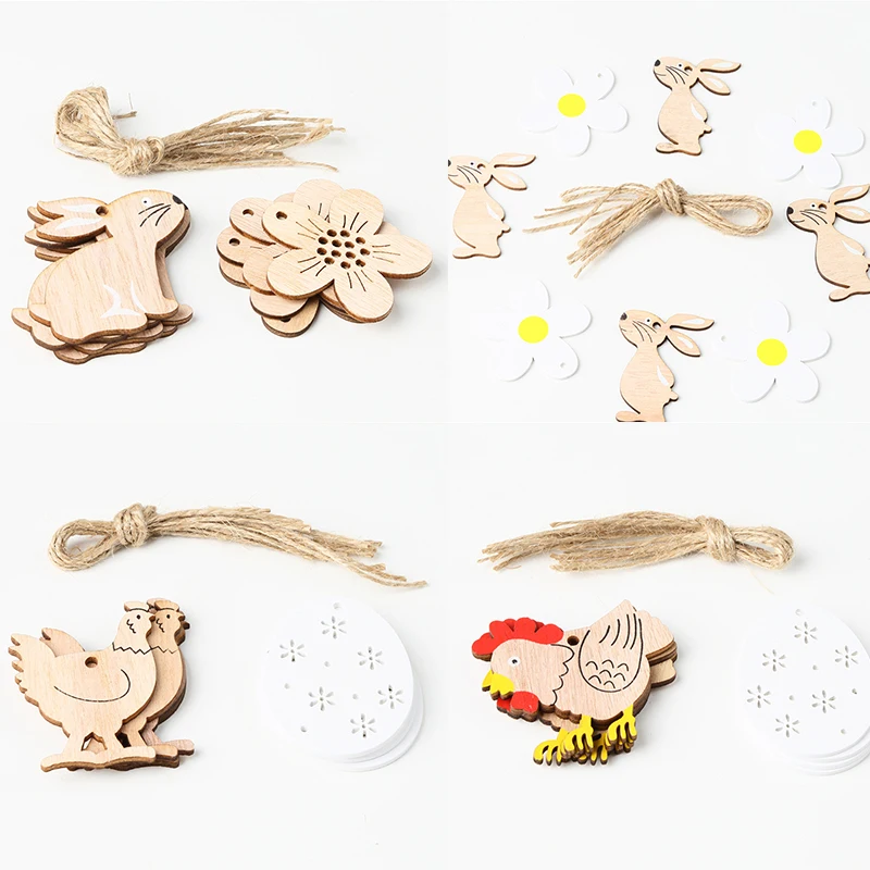 8 шт., пасхальные яйца, украшения для дома, пасхальные кролики, деревянные поделки, DIY орнамент, висячая бирка, деревянные кролики, пасхальный декор