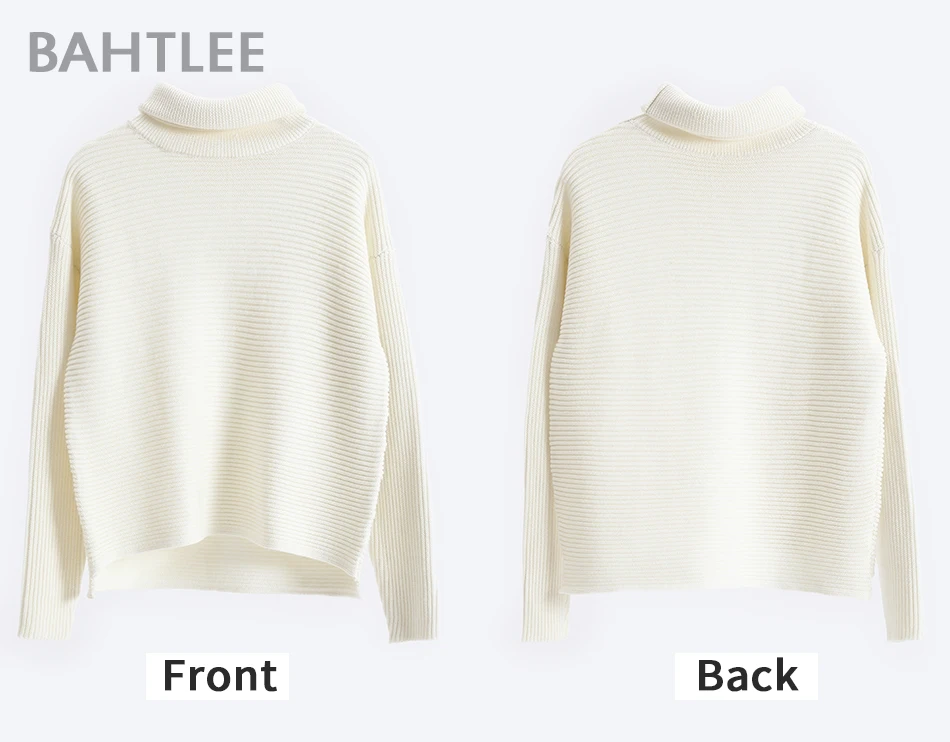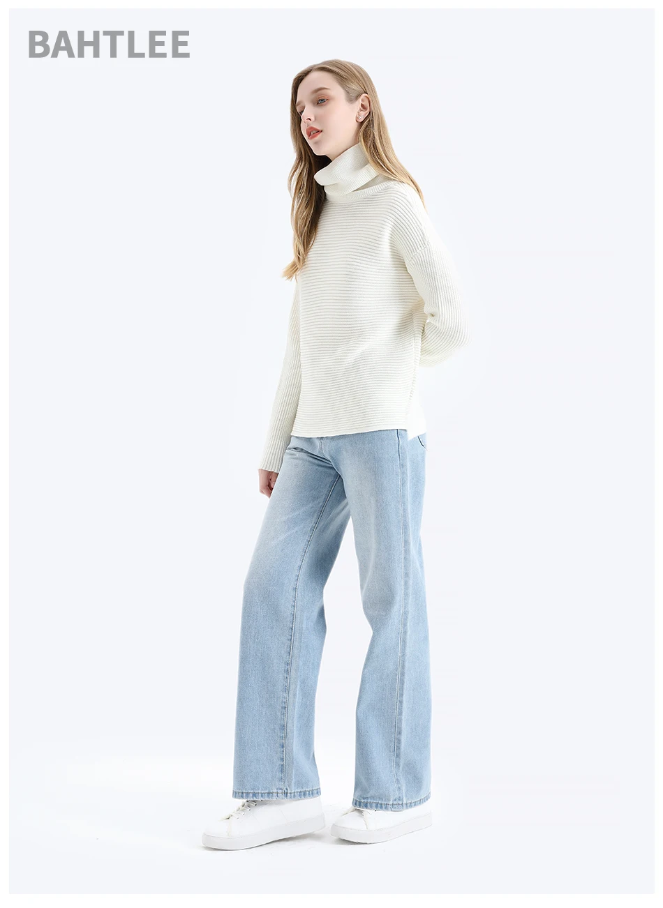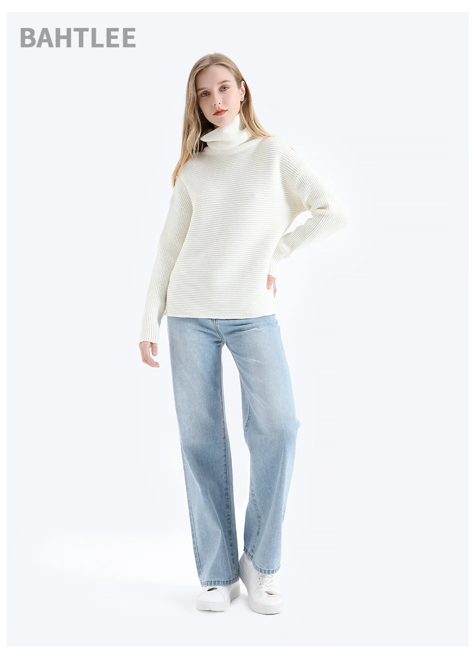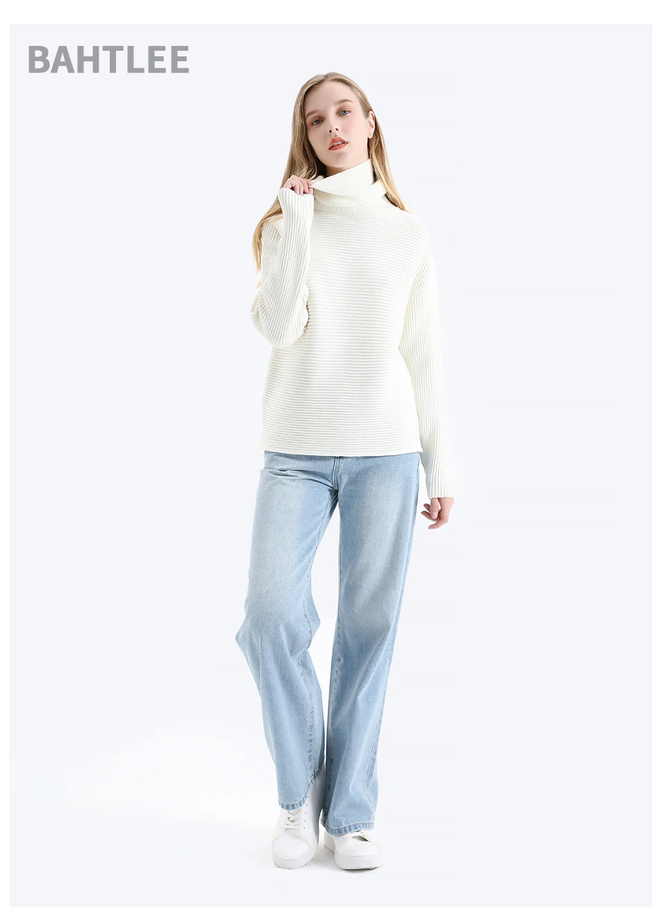 Женский шерстяной свитер BAHTLEE, свитер с высоким воротником, пуловер с длинными рукавами, осенне-зимний вязаный джемпер, Свободный теплый