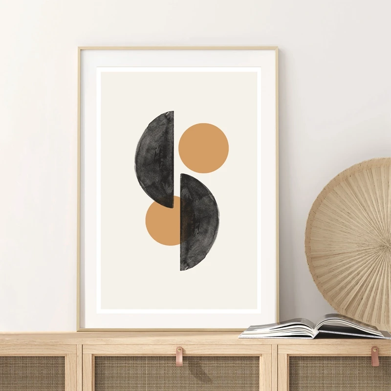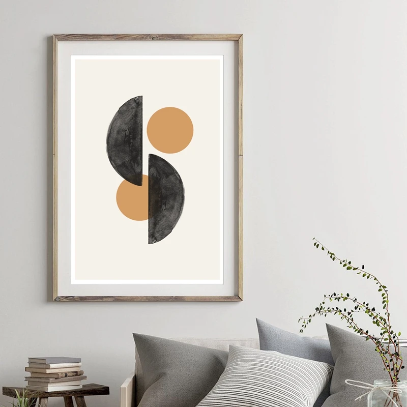 ThemeSun And Moon Beige Geometric Art Canvas Prints
