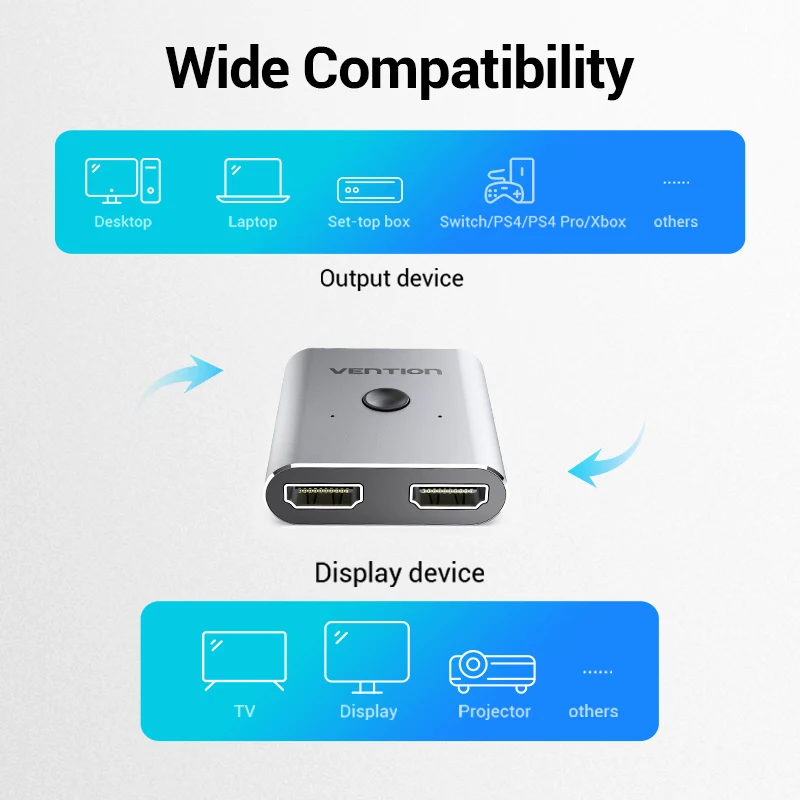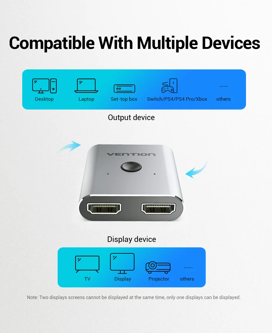 HDMI-коммутатор Vention, 2 в 1, HDMI 2,0, 4K, двунаправленный, для ТВ-приставки PS4, 1x22x1