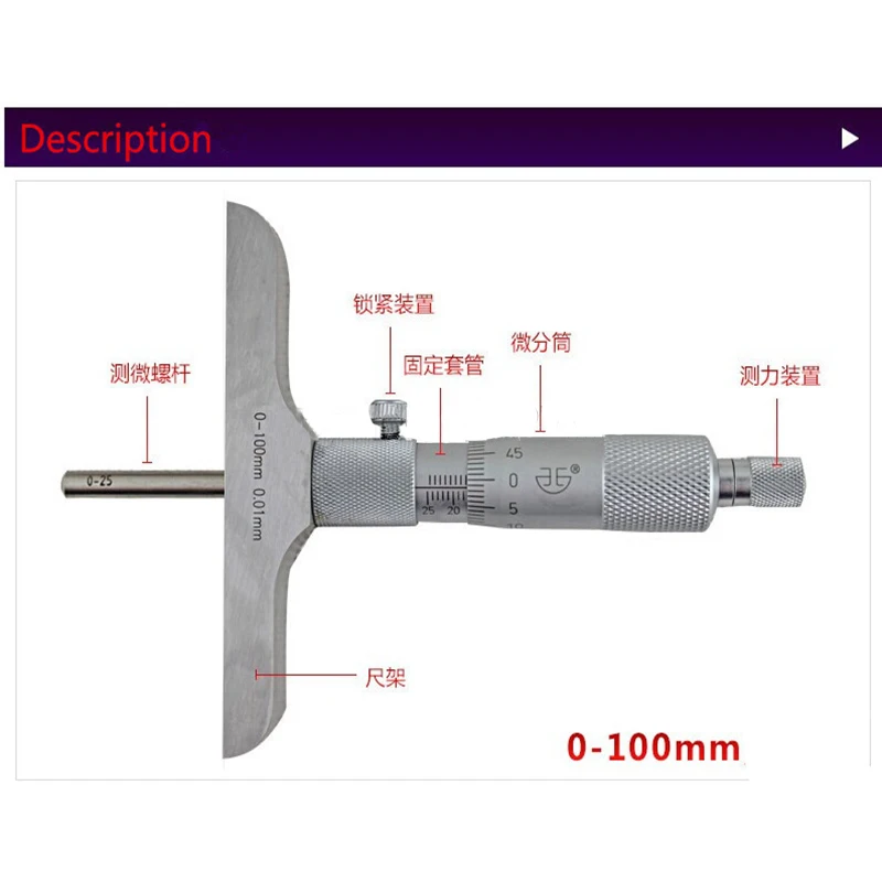 Микрометр глубины 0-25 мм 0,01 мм машинист Mic измерительный инстру...