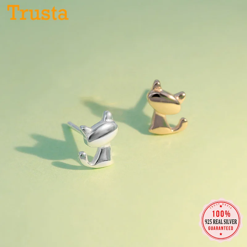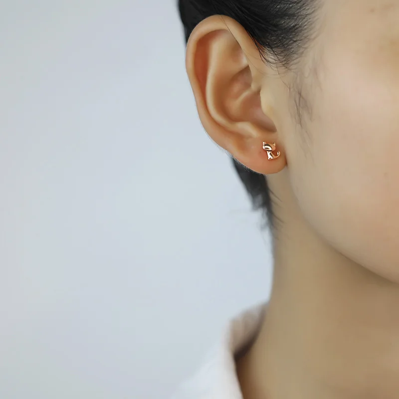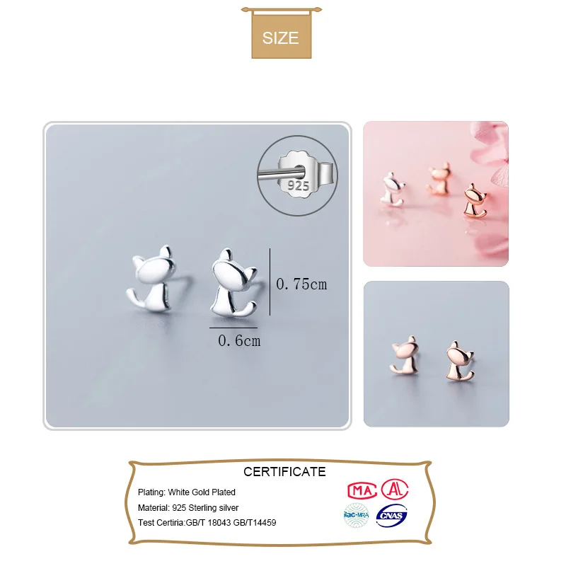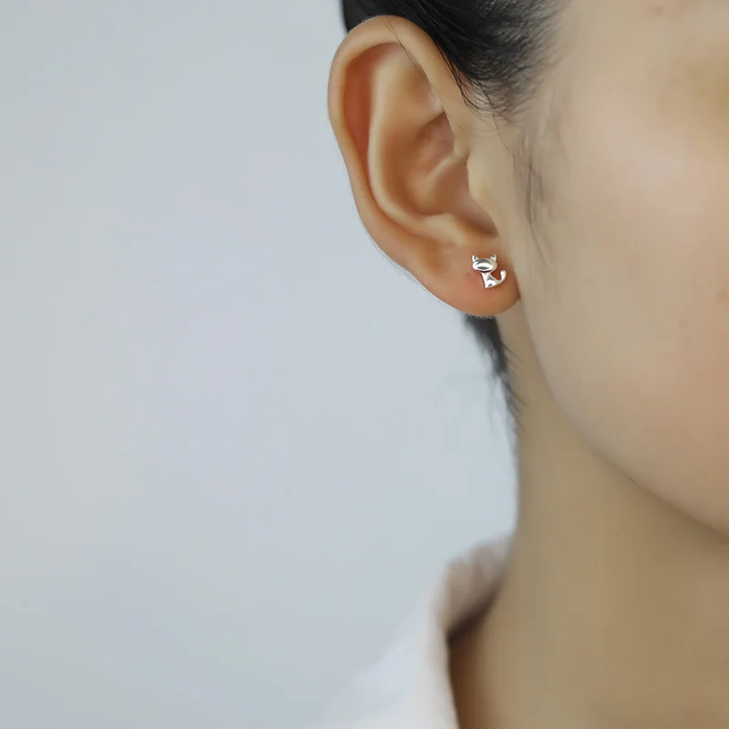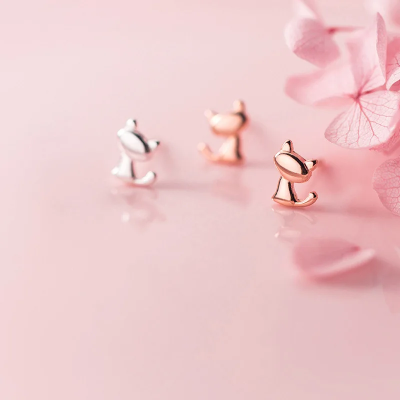 Серьги-гвоздики женские, из серебра 925 пробы, в виде маленького кота
