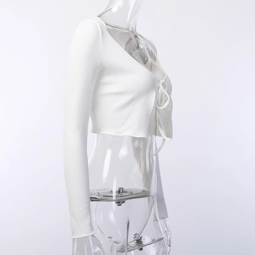 Женский укороченный топ с завязками, пикантный Кардиган с длинным р...
