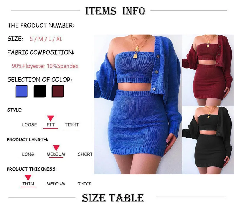 Adogirl женский модный повседневный комплект из 3 предметов свитер Топ с длинным рукавом куртка пальто облегающая мини-юбка женское сексуальное платье костюм