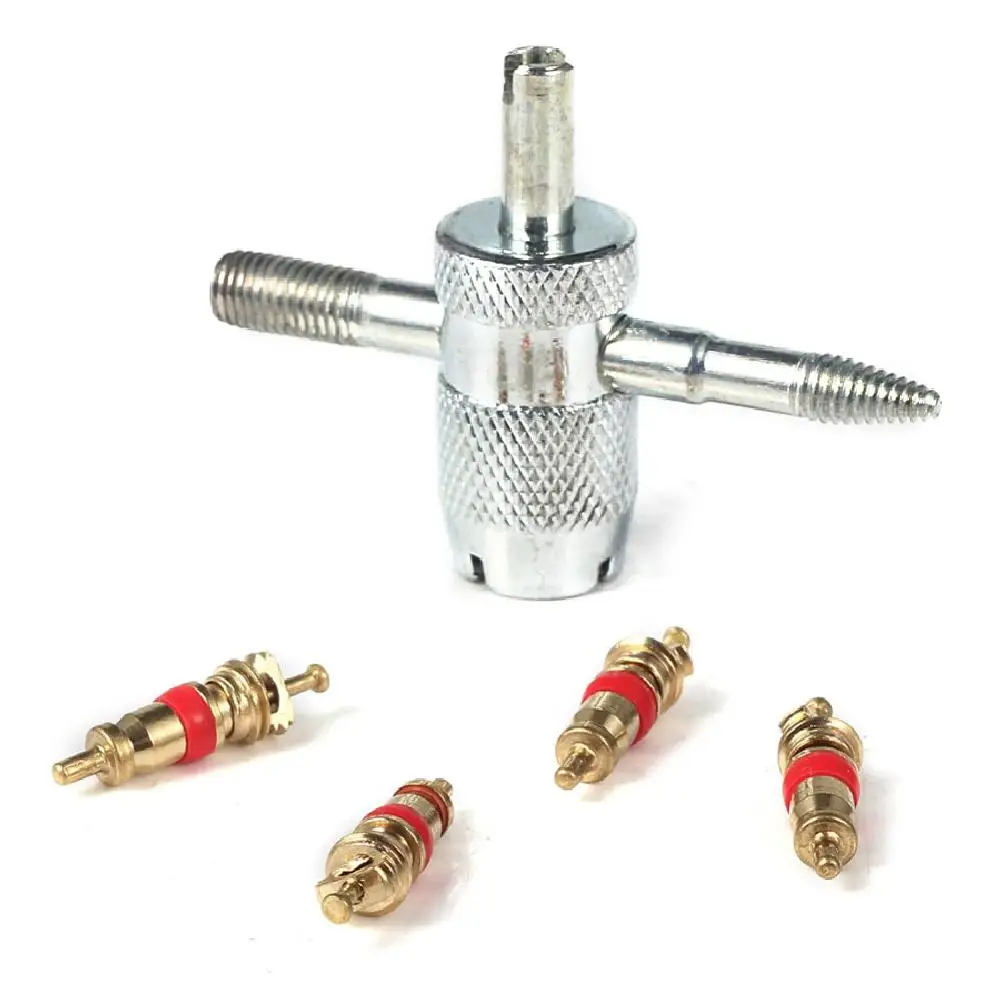 4 в 1, клапан отвертки для шин, инструмент для ремонта стержня для автомобиля, грузовика, велосипедных шин, 4 шт., сердечники клапанов, установщик, 4-ходовой инструмент