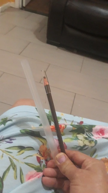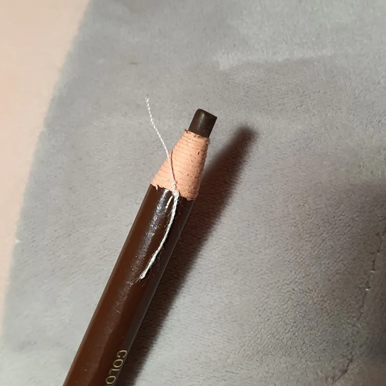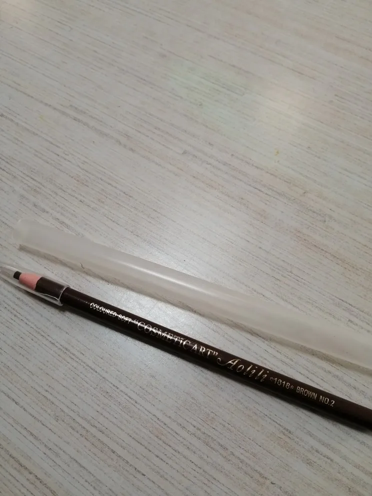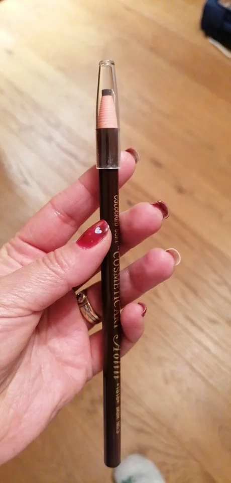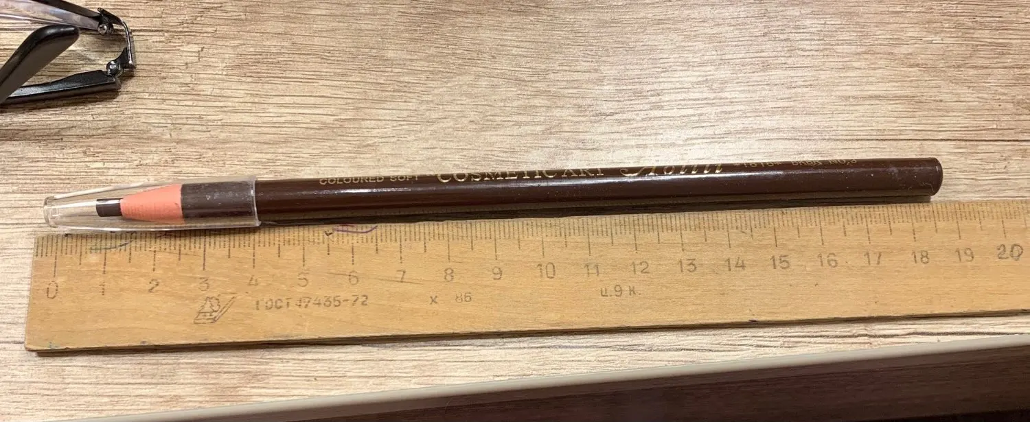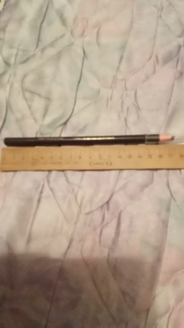 Карандаш - ну очень большой. В длину 18 см и окружность 0,7 приблизительно. Хватит на долго. Цвет , как и заявлено , темно коричневый. Точить не надо , для удобства шнурочек , который освобождает грифиль карандаша , если потянуть за него. Я довольна. Спасибо. На фото левая бровь подкрашена карандашом. Стирается , не водостойкий. На день хватает.