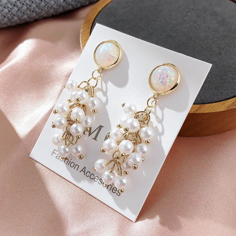 Женские длинные серьги с Белым Круглым жемчугом, свадебные Подвесные серьги модные корейские драгоценности