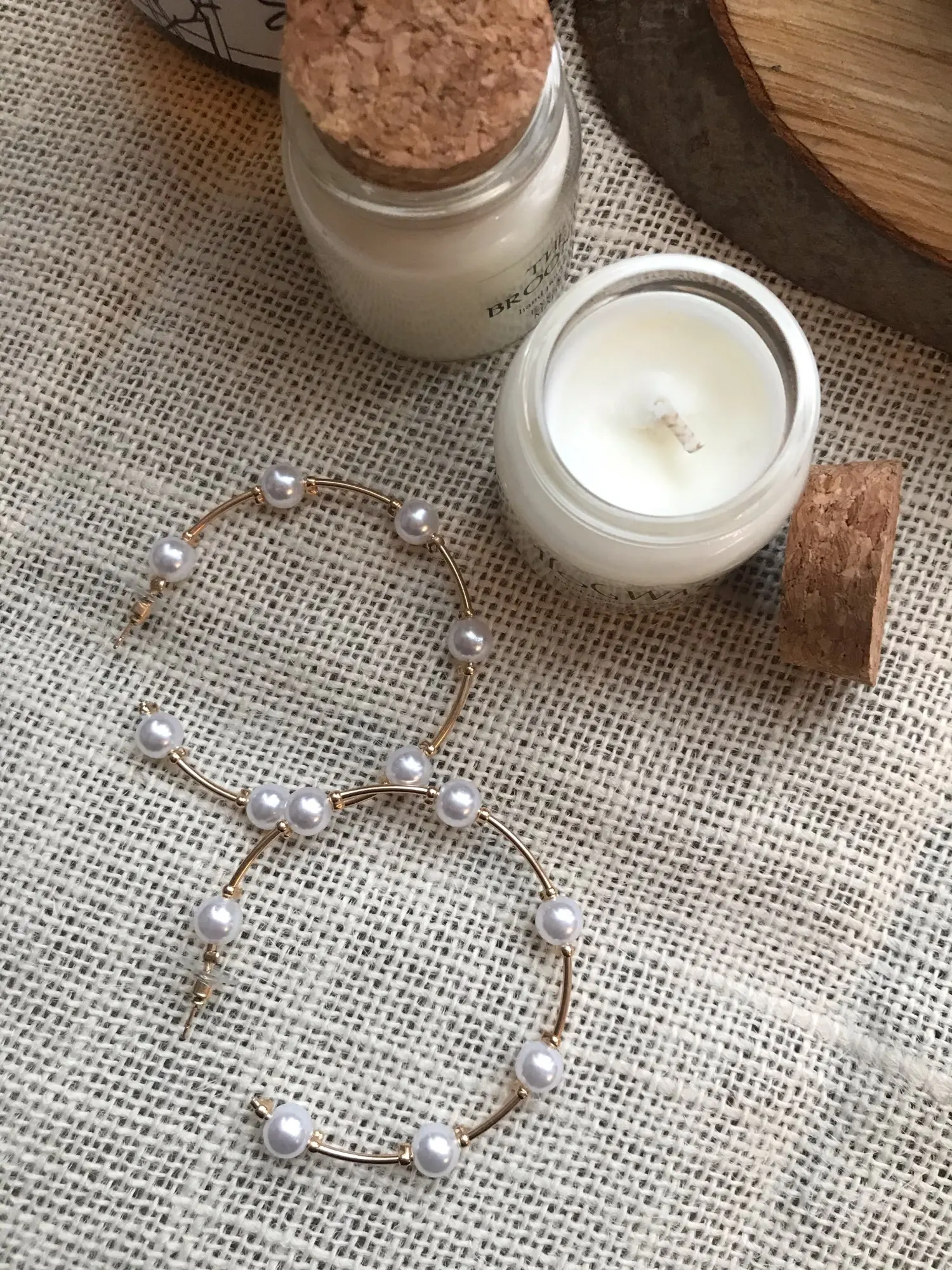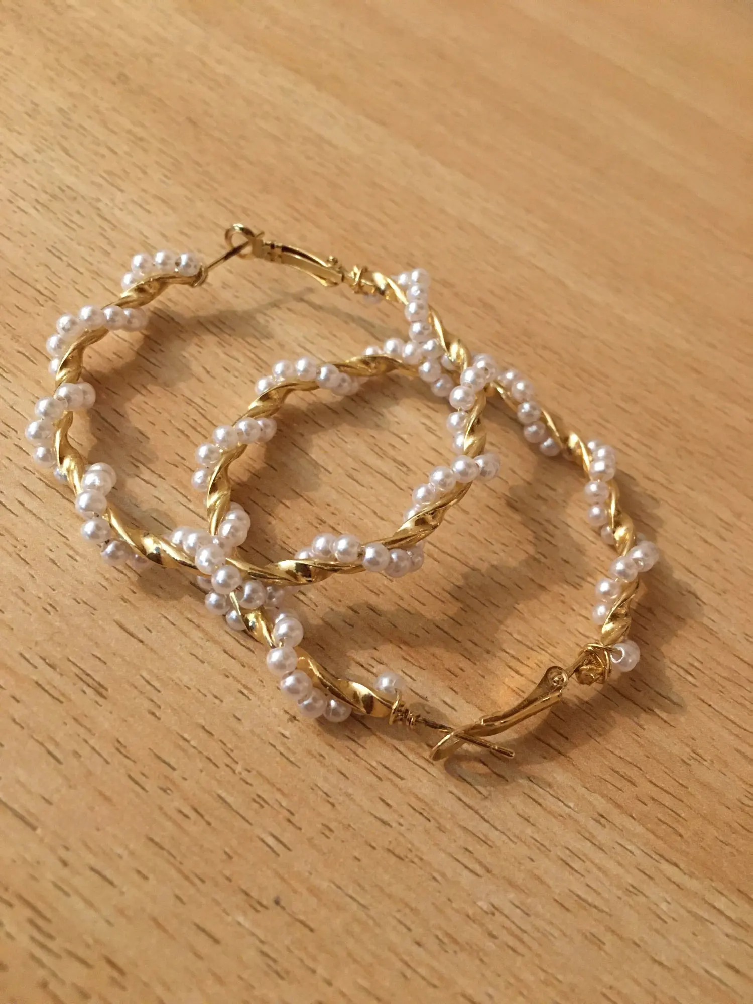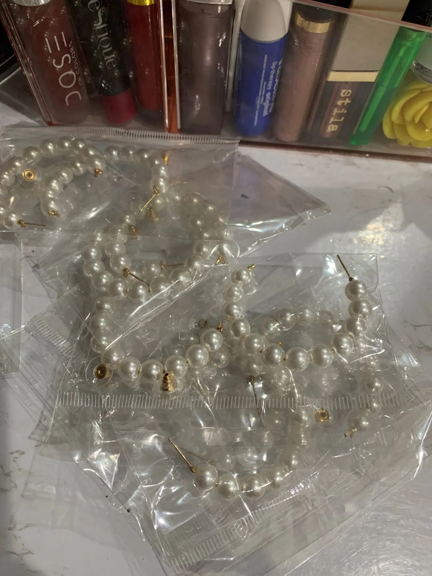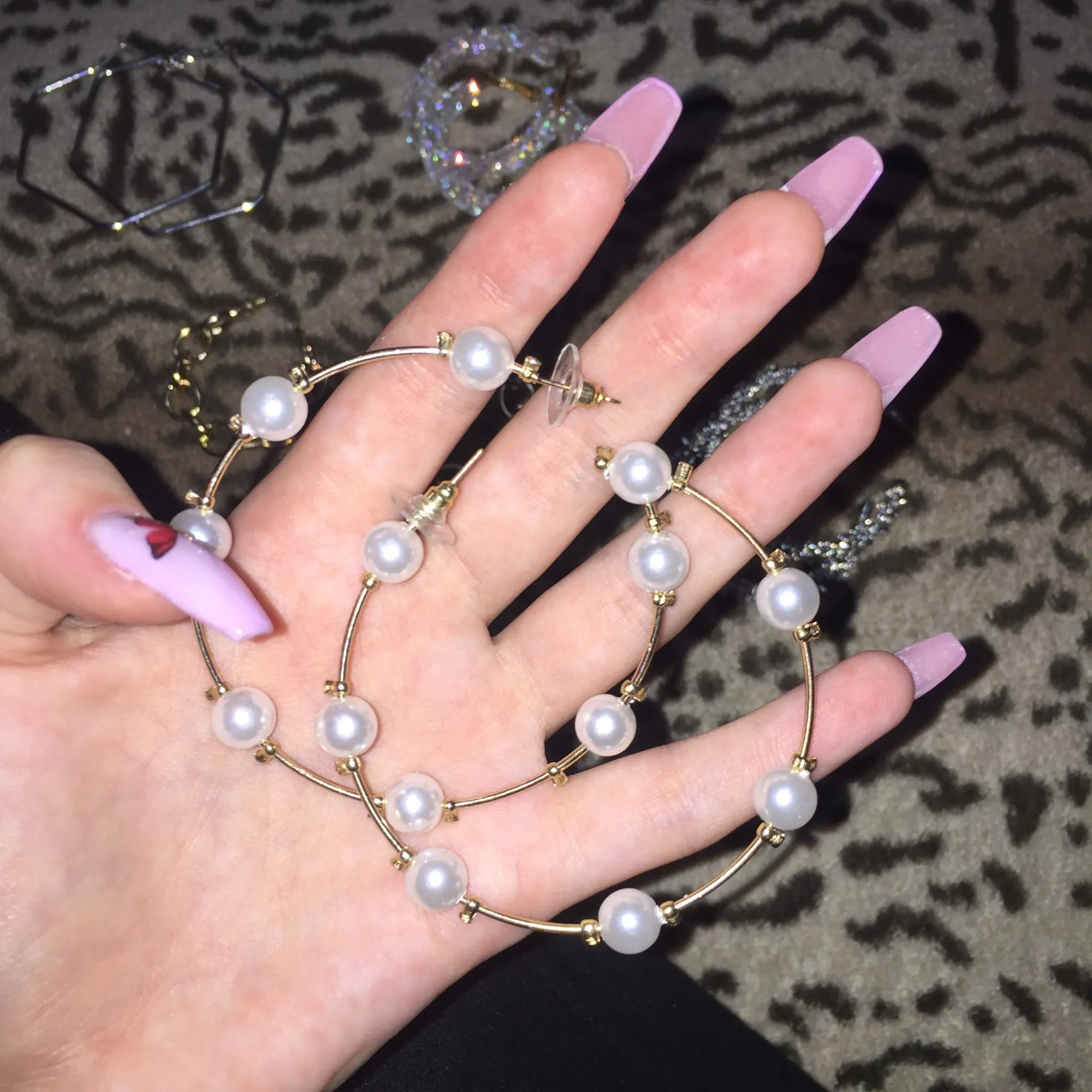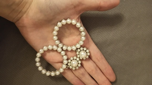 товар шел меньше месяца), получила на почте. жемчужинки немного покорябаны, но не критично, они плотно зафиксированы, не перемещаются по кольцу. Диаметр кольца серьги 5,5 см, если с бусинами то 7,3 см, большие, на ухе ощущаются и немного оттягивают прокол. Замочек очень плотный, пружинка сильно держит. Продавца советую, добросовестный!