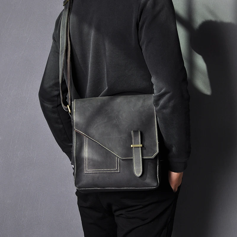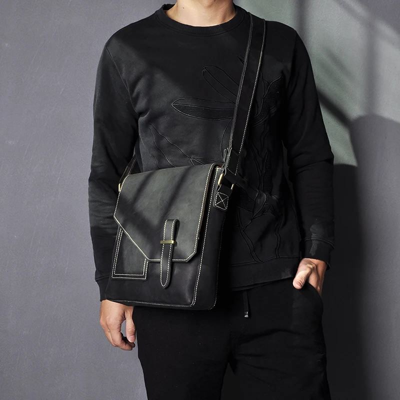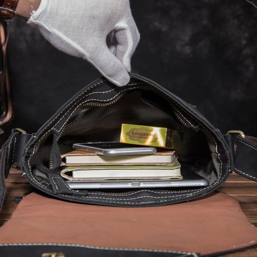 100% качественная кожаная мужская модная сумка через плечо Crazy horse, дизайнерская сумка-мессенджер, рюкзак для университетской книги, школьная сумка 2486