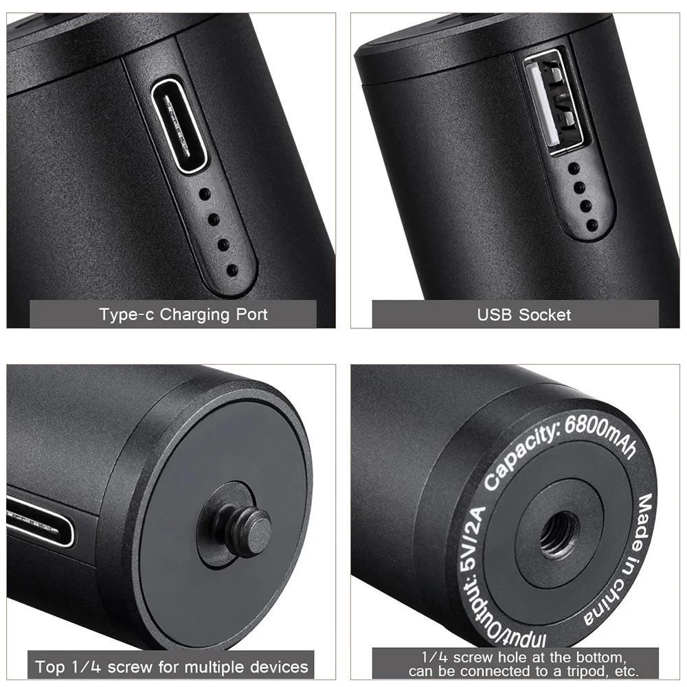 Особенности:Аккумуляторная ручка большой емкости 6800 мАч с портом зарядки USB и Type-C, совместима с карманом DJI OSMO, экшн-камерой, компактной цифровой камерой, смартфоном.Со стандартным 1/4 дюймовым винтом в верхней части для установки экшн-камеры, компактной цифровой камеры, держателя смартфона и других устройств.Универсальный винт 1/4 дюйма в нижней части позволяет крепить рукоятку к штативу или селфи-палке для более стабильного и удобного использования.Материал из алюминиевого сплава, компактный размер, легкий и портативный, вы можете легко положить его в сумку или рюкзак, чтобы носить с собой.Рукоятка аккумулятора не только может оптимизировать качество съемки, но и эффективно увеличить время съемки. Это хороший партнер для наружной фотосъемки и видеоблога. Характеристики:Бренд: ulanziМодель: BG-2Материал: алюминиевый сплавЕмкость аккумулятора: 6800 мАчРазмер товара: 12,5*3,2 см/5,07 * дюймаВес изделия: 200 г/7,1 унцииПосылка: 16,5*6,2*3,8 см/6,5*2,4 * 1.5inВес посылка: 227 г/8 унций Примечание:Камеры, смартфон, микрофон и держатель телефона, показанные на картинке, в комплект не входят. Комплектация:1 * ручка аккумулятора1 * USB-кабель для зарядки1 * Руководство пользователя (на английском языке)