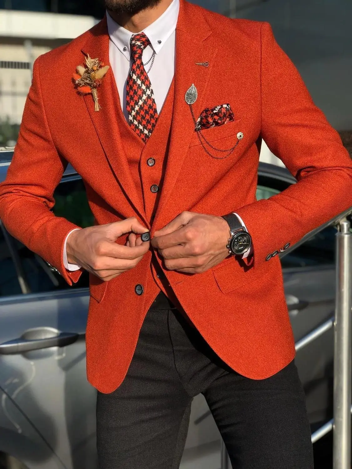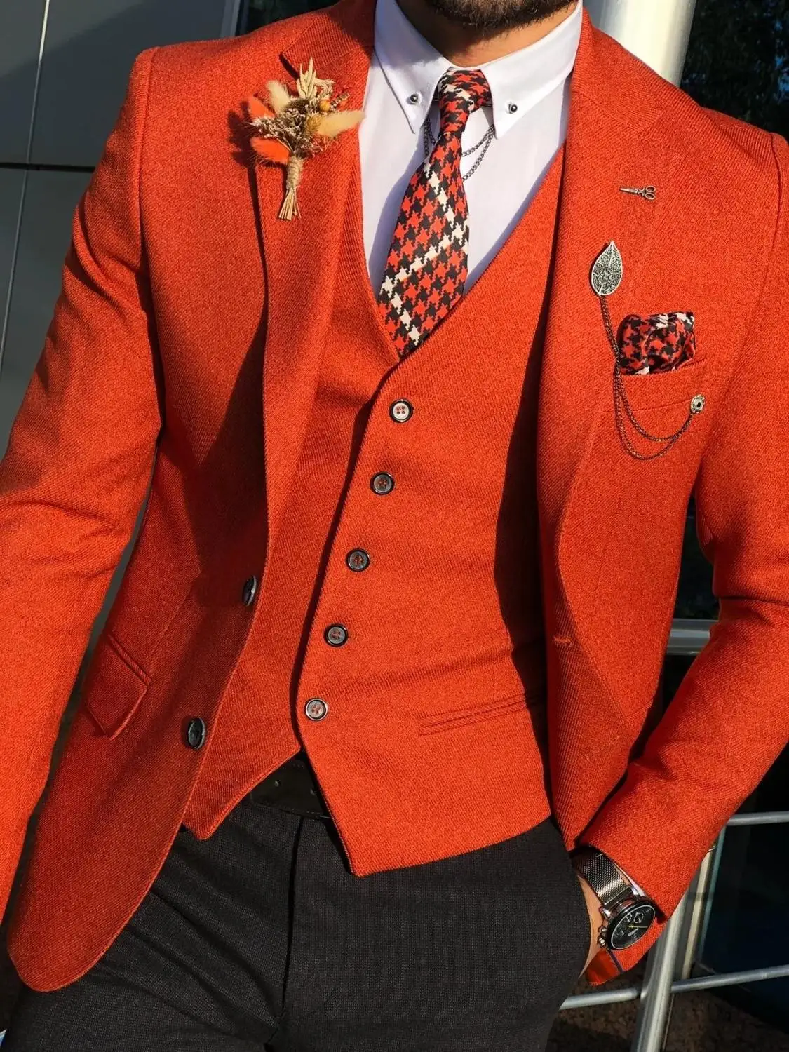 Костюм мужской твидовый из трех предметов, пиджак + брюки + жилет