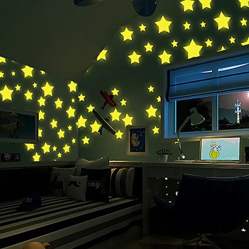 100 шт светящиеся в темноте игрушки Светящиеся Звездные наклейки спальня диван флуоресцентная живопись игрушки ПВХ наклейки для детской комнаты