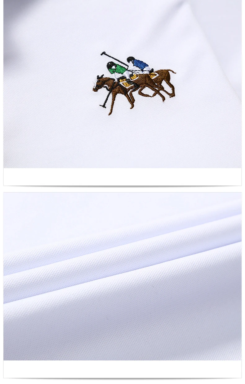 Рубашка-поло мужская из синтетического волокна, Повседневная рубашка-поло с коротким рукавом и вышивкой, лето 633