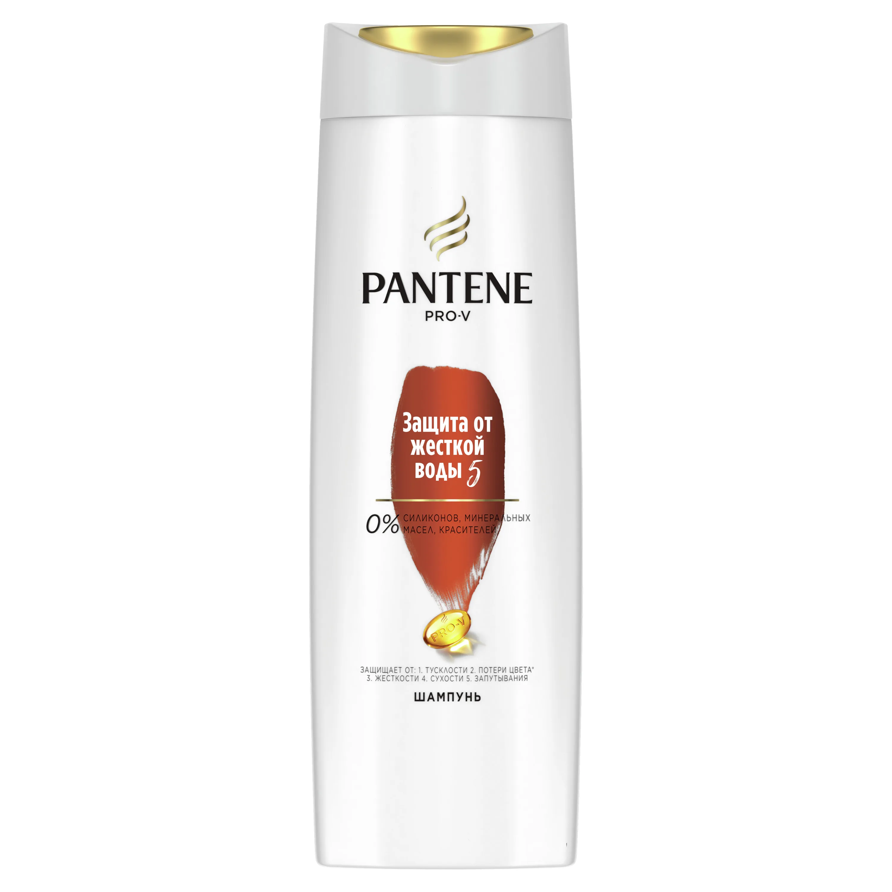 Шампунь Pantene Pro-V «Защита от жесткой воды 5» защищает от: 1) сухости, 2) жесткости, 3) спутывания, 4) ломкости, 5) потери цвета*. Мягко очищает, заряжая волосы активными питательными веществами Pro-V. Отлично увлажняет волосы с одного применения. (*при систематическом применении шампуня и бальзама-ополаскивателя). Преимущества: Шампунь, отлично увлажняющий волосы с одного применения. Защищает естественный липидный слой волос. Насыщает влагой самые сухие участки. Придает волосам идеальную мягкость.