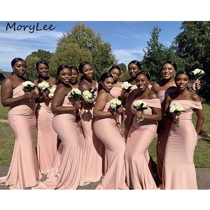 Розовые Платья для подружек невесты, в африканском стиле, с открытыми плечами, до пола, со шлейфом, из шелкового атласа, для свадебной вечеринки, платья подружек невесты