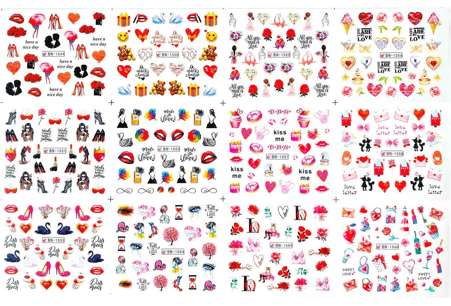 12 шт., декоративные наклейки для ногтей, на День святого Валентина