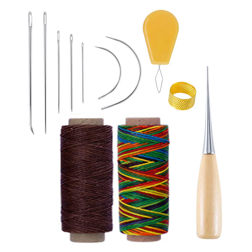 Набор для шитья кожи с вощеной нитью, игла для кожи, шило для шитья...