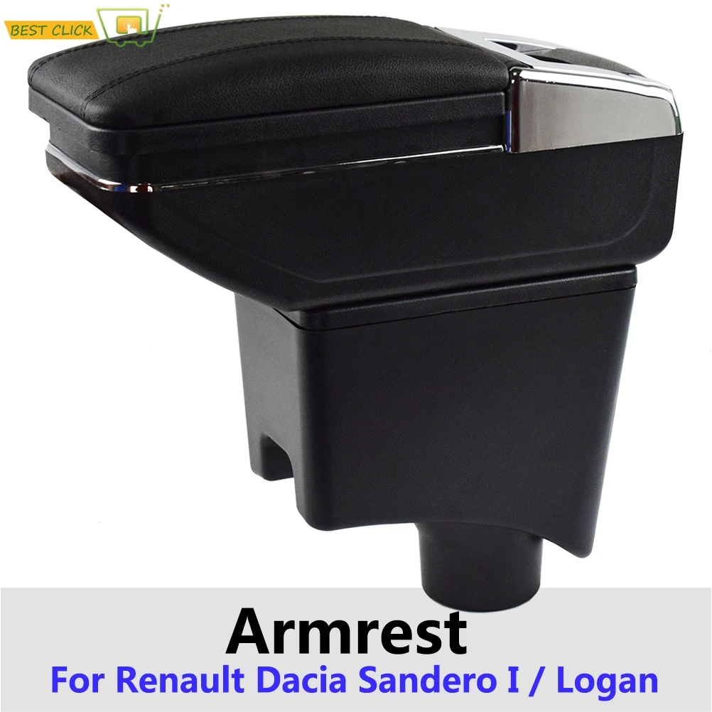 Ящик для хранения для Renault Sandero ILogan, поворотный подлокотник с подлокотником, черная кожа