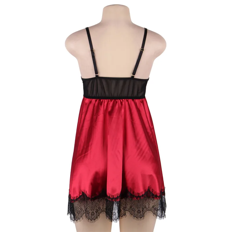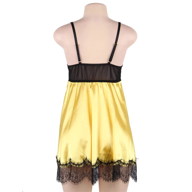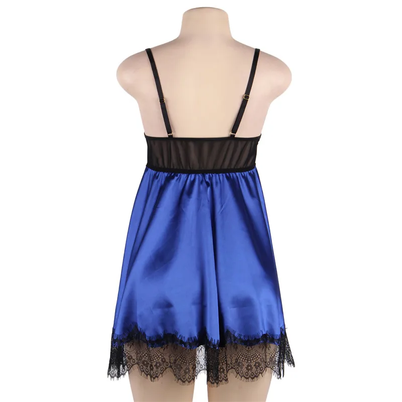 Сексуальное нижнее белье, атласная ночная рубашка с ресничками, кружевное женское нижнее белье, платье на косточках, размера плюс