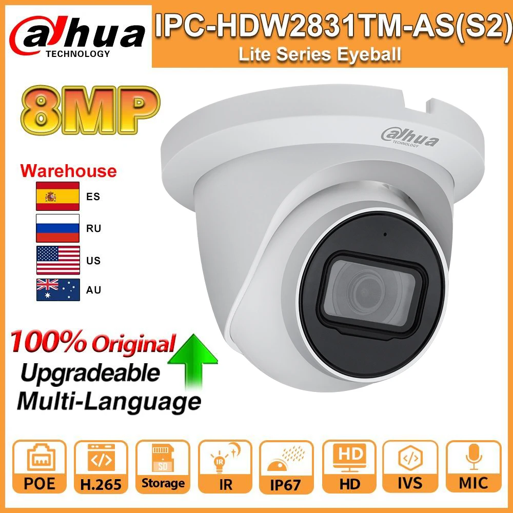 Dahua оригинальная 8MP 4K HD ip-камера IPC-HDW2831TM-AS-S2 IPC PoE IR 30m WDR IP67 H.265 Mic IVS сетевая камера видеонаблюдения