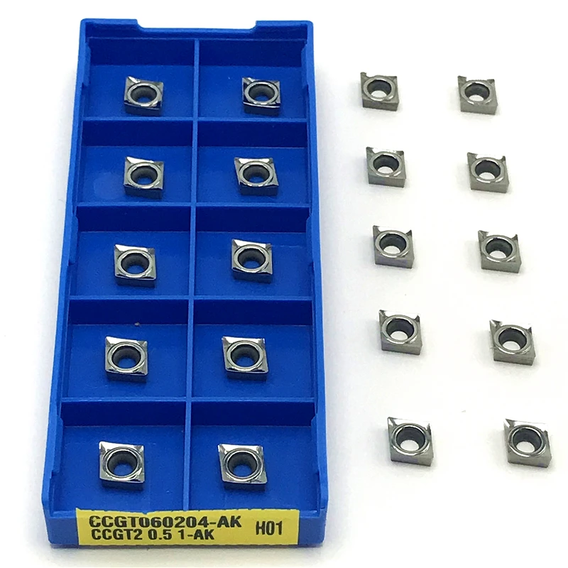 Твердосплавная вставка для токарного станка с ЧПУ CCGT060202, CCGT060204, CCGT060208, AK H01, инструмент для обработки металла, алюминия, меди вставка для режущего инструмента