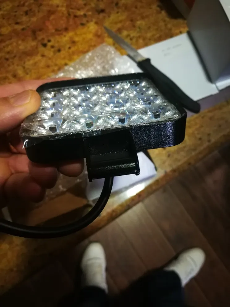 Отправили товар быстро, трек полностью отслеживался, дожло быстро, ничего не повредилось. Поставил на шниву в качестве доп света для ночных покатушек, так вот свою цену отрабатывают сполна! Доволен целиком и полностью! На фото не очень понятно, но в живую свети шикарно!